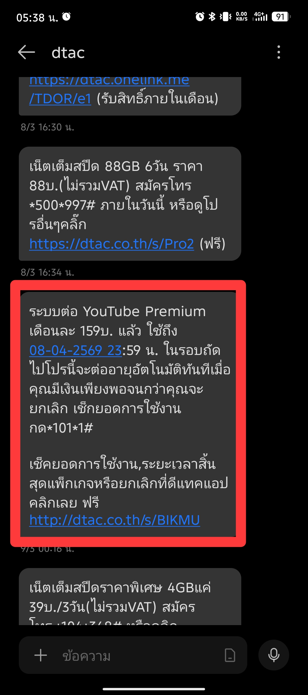 สมัครแพ็กเกจเสริม YouTube Premium กับ dtac แล้วโดนหักเงิน แต่ YouTube ยังไม่ได้สิทธิ์ Premium