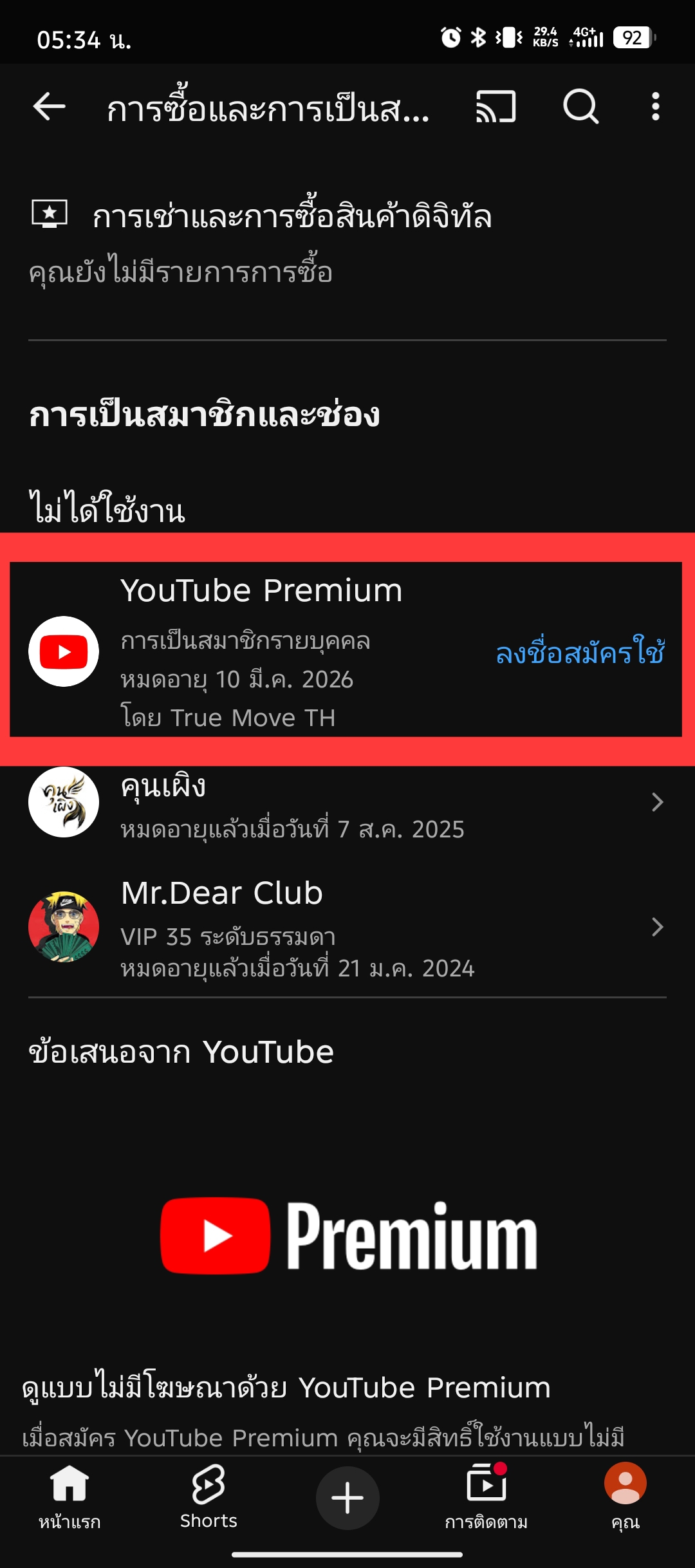 จ่าย youtube premium ผ่าน dtac แต่ยังใช้ไม่ได้