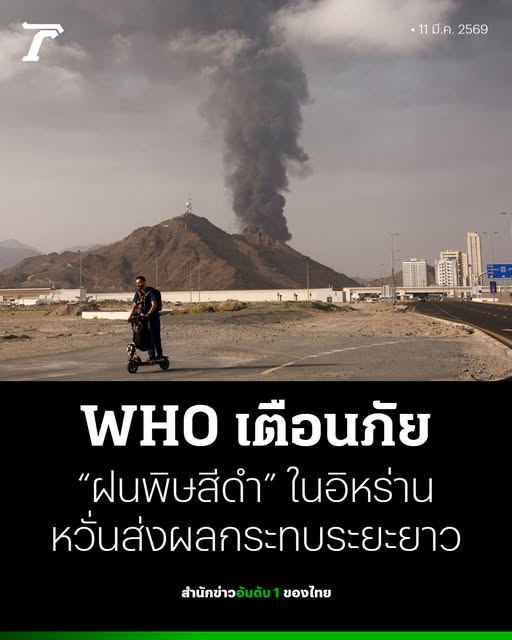 เมื่อวันอังคารที่ 10 มี.ค. 2569 นายคริสเตียน ลินด์ไมเออร์ โฆษกขององค์การอนามัยโลก (WHO) ออกมาเตือนว่า “ฝนดำ” หรือน้ำฝนที่ปนเปื้อนด้วยมลพิษจากคลังน้ำมันอิหร่าน ที่ถูกโจมตีจนไฟลุกไหม้อย่างหนักในช่วงไม่กี่วันที่ผ่านมา สร้างความกังวลอย่างหนักต่อคุณภาพอากาศ ซึ่งอาจก่อให้เกิดความเสี่ยงต่อสุขภาพอย่างรุนแรง