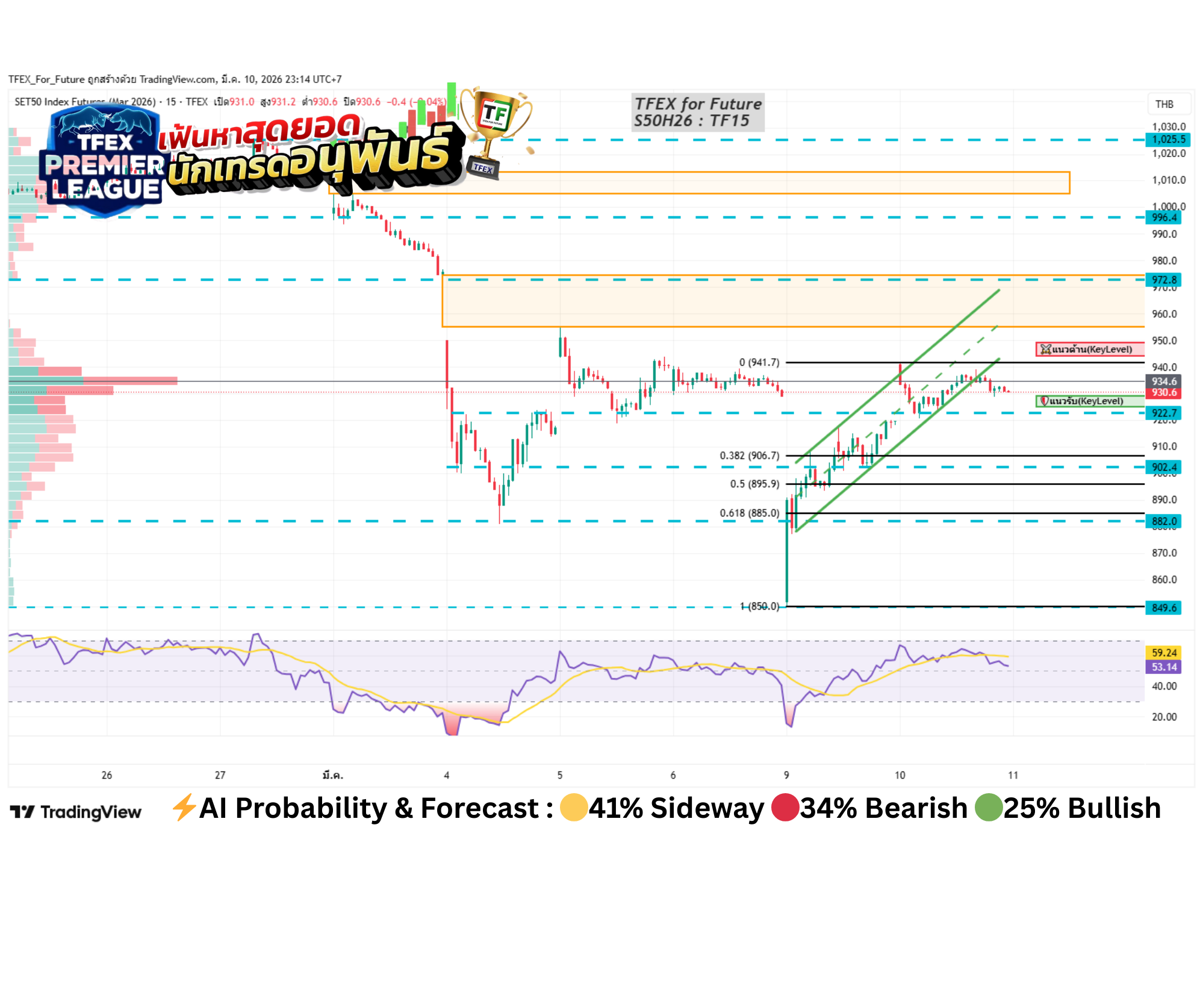 🟢 กรอบวัดใจ! S50H26 แกว่งโซน 920–940 ลุ้นเบรกชี้ทางวันนี้
