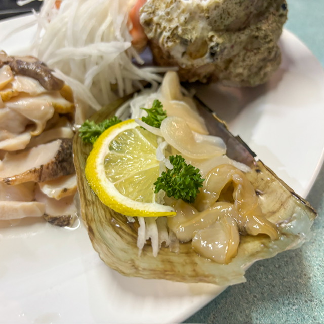 ระหว่างนั่งรอ ลูกค้าพี่ผู้หญิงข้างๆ มาคนเดียว คุยกันถูกคอ แกเลยให้ชิม หอย ผม่ไม่แน่ใจหอยอะไร มีมาสองแบบ หนุบๆ