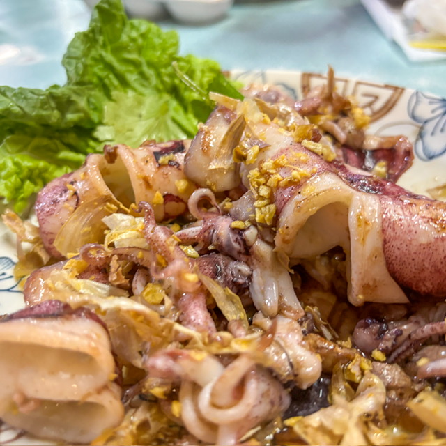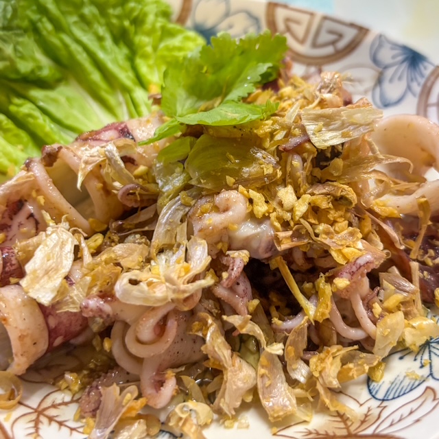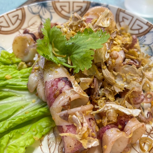 จานนี้เป็นหมึกกระเทียม ง่ายๆ แต่อร่อย คืออาหารทะเลพวกนี้ อย่างเดียวคือ ขอให้สด