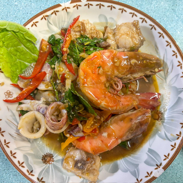 กระเพราทะเลรวม จานนี้เผ็ด สำหรับตัวผมเผ็ดมาก แต่สำหรับคอเหล้า คนกินรสจัด คงกำลังดี