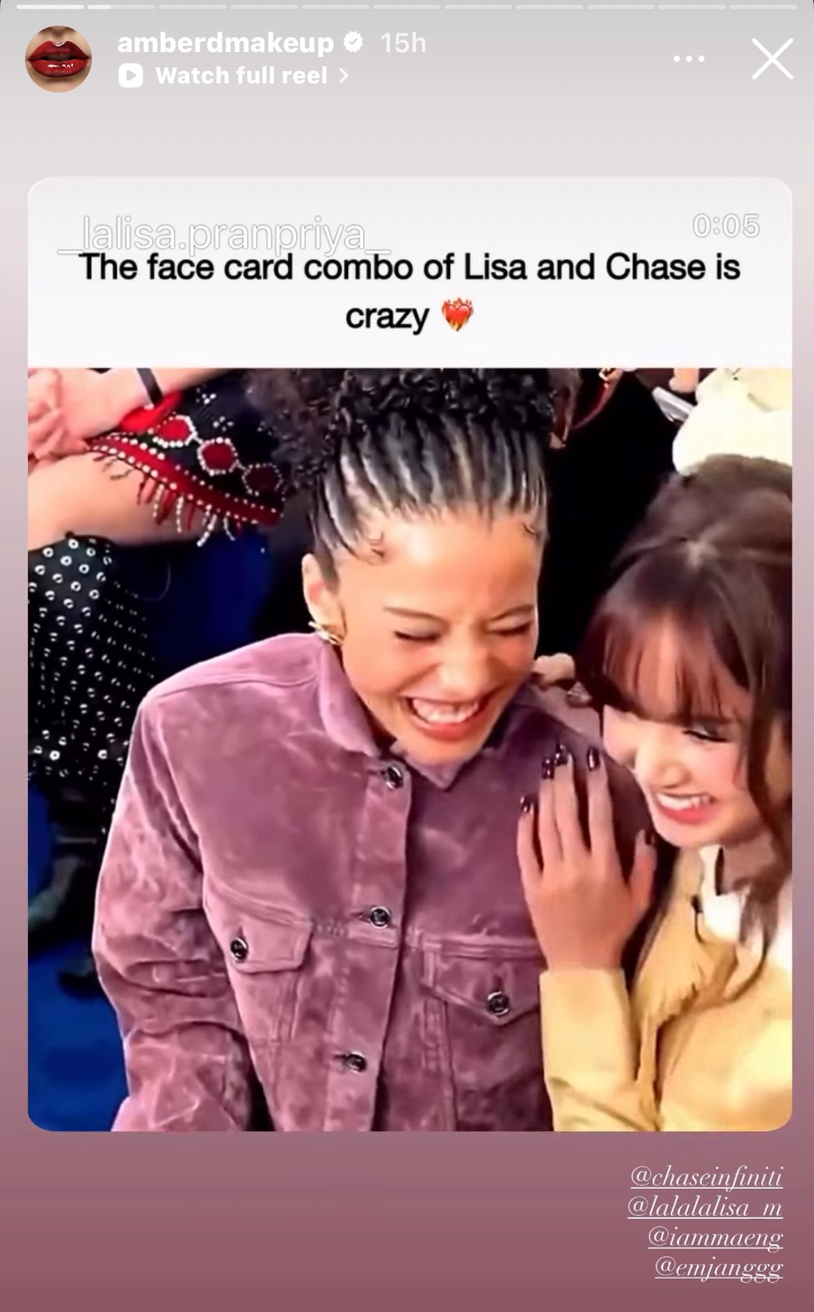Make-Up Artists ของ Chase Infiniti ได้มาโพสต์รูป LISA และ Chase Infiniti พร้อมข้อความว่า "การจับคู่ใบหน้าของทั้งคู่ LISA
