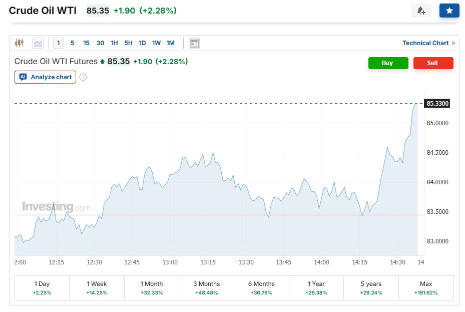Crude Oil WTI 85.33 +1.88 (+2.25%)