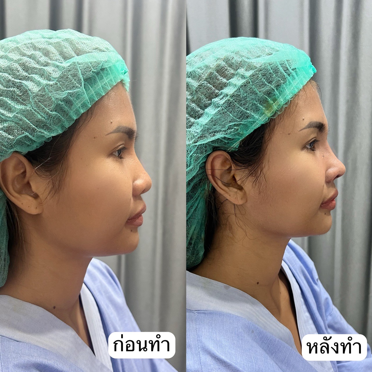 ก่อนทำ-หลังทำเสร็จที เห็นชัดมากว่าทรงจมูกดูเปลี่ยนไป หน้าดูมีมิติมากขึ้น