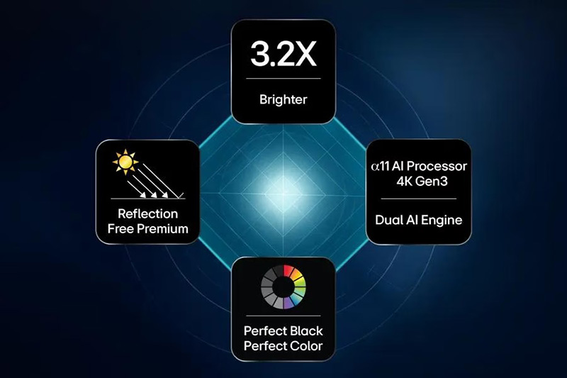 ✒️เทคโนโลยีเพิ่มความสว่าง (รุ่น Pro มีในรุ่น 77 นิ้ว และ 83 นิ้ว รุ่น Standard มีในรุ่น 48 นิ้ว 55 นิ้ว และ 65 นิ้ว แต่ไม่มีในรุ่น 42 นิ้ว)