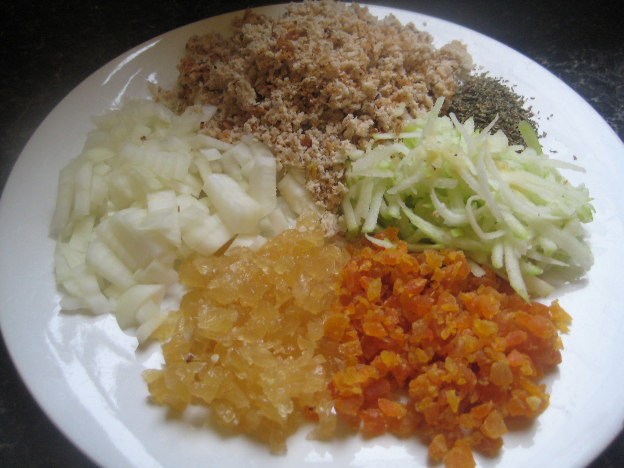ขูดแอปเปิ้ล และบดขนมปังพักไว้