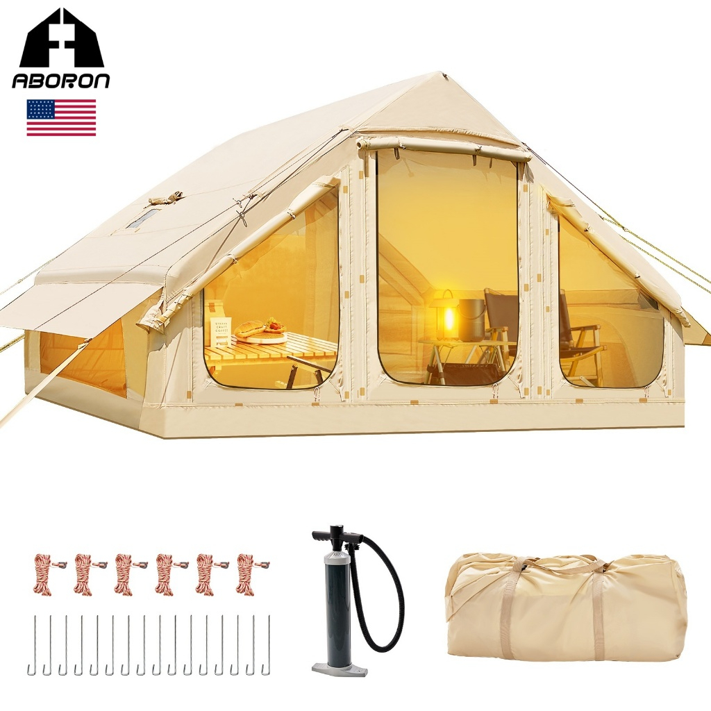 🏕️🧳 เต็นท์เป่าลม 4-6 คน ABORON CQ5 กางไว 5 นาที กันน้ำ PU3000 สำหรับแคมป์ครอบครัว 🌅⛺
