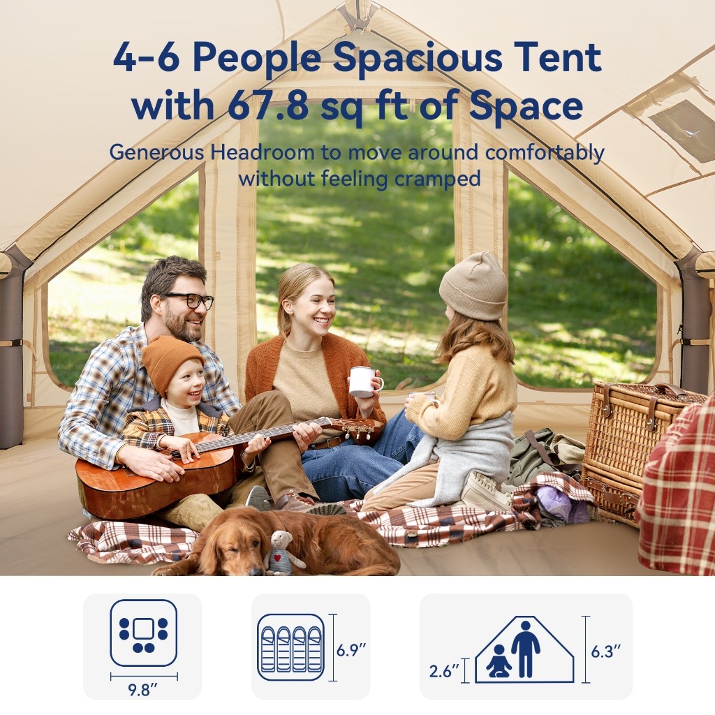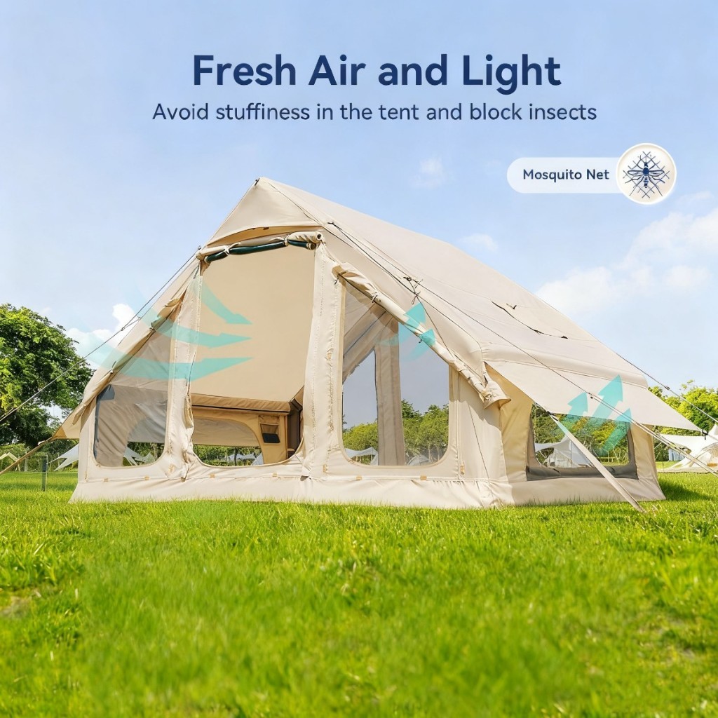 จุดที่น่าสนใจอีกอย่างคือมีช่องระบายอากาศและแจ็คเตา ช่วยให้การใช้งานในทริปกลางแจ้งคล่องตัวขึ้น เหมาะทั้งใช้พักผ่อน นอนค้างคืน หรือจัดมุมแคมป์ให้น่านั่งมากขึ้น สำหรับคนที่อยากได้ เต็นท์เป่าลม 4-6 คน ที่กางง่าย เก็บง่าย และเหมาะกับการใช้งานจริงทั้งครอบครัว รุ่นนี้ตอบโจทย์ได้ค่อนข้างครบ โดยเฉพาะสายแคมป์ที่ให้ความสำคัญกับความเร็วในการกางเต็นท์และความสบายตอนใช้งาน 🌅