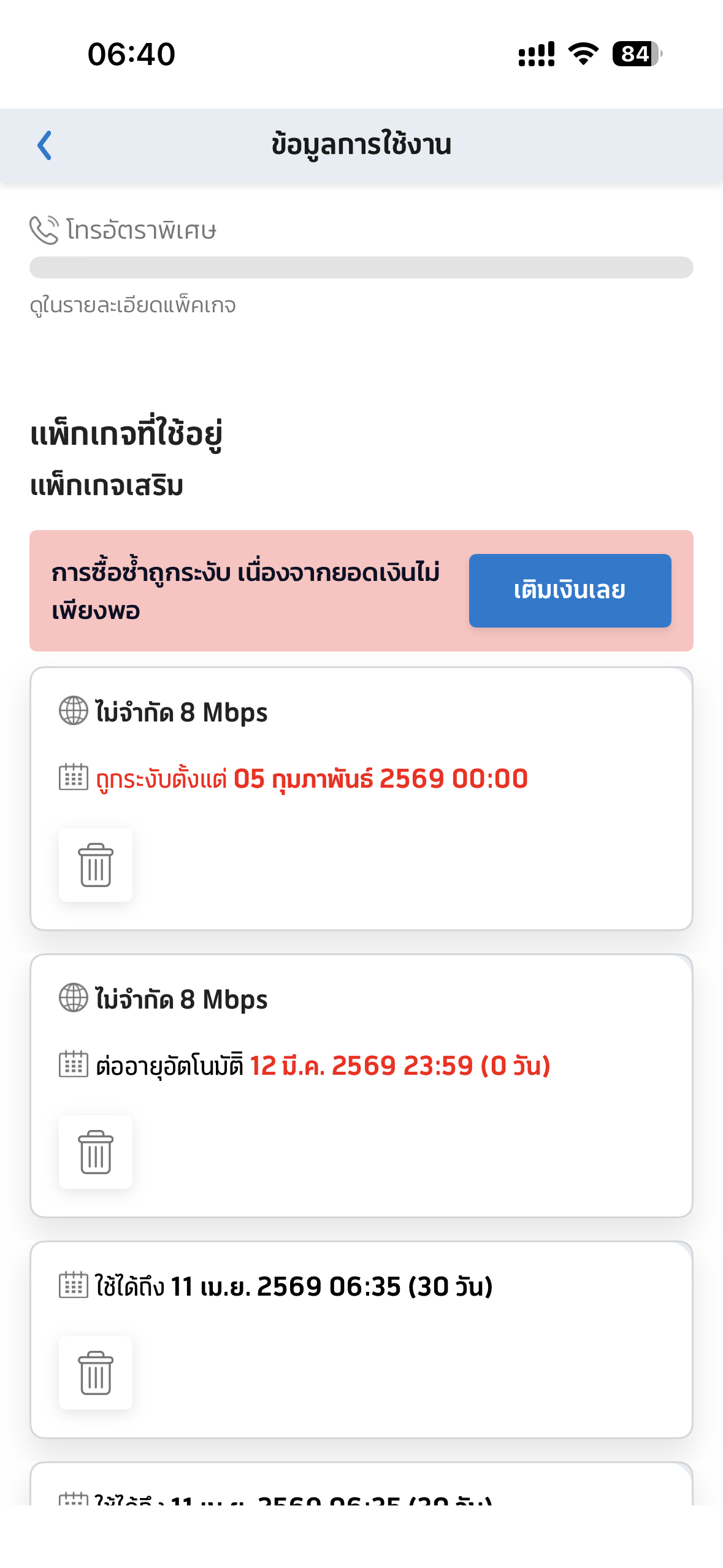 เติมเงินแล้วแต่เน็ตไม่ตัดทำยังไงดีค่ะ