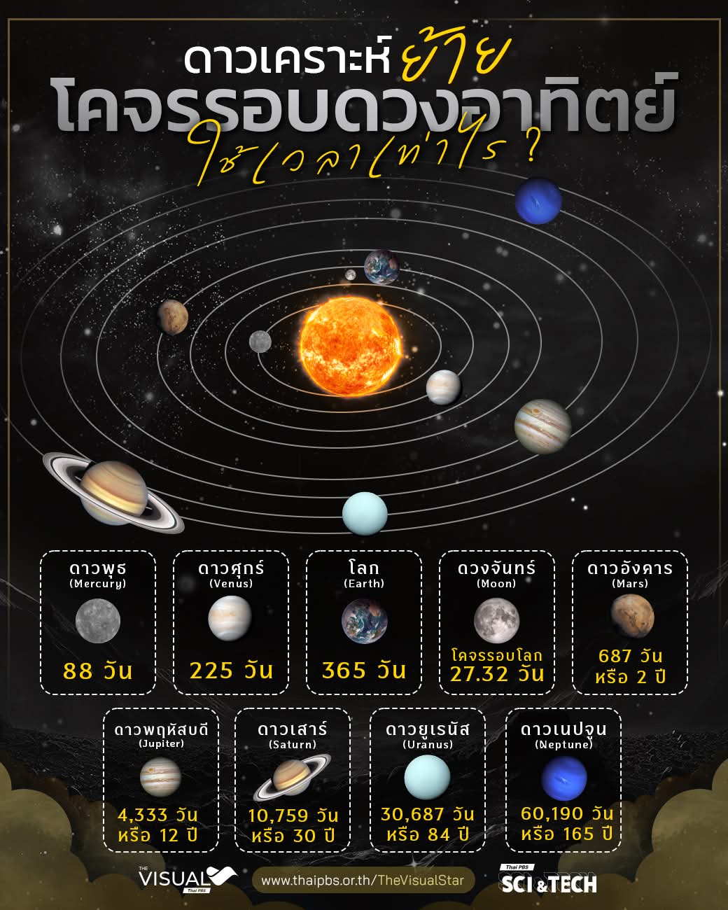 ดาวเคราะห์ย้ายโคจรรอบดวงอาทิตย์ใช้เวลาเท่าไหร่?