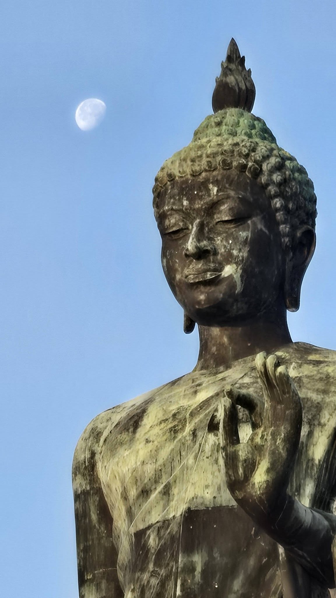 เนื่องจากองค์พระมีขนาดใหญ่และตั้งอยู่กลางแจ้ง (Outdoor) การจะรักษาให้เป็นสีทองแดงแวววาวตลอดเวลานั้นทำได้ยากมาก และอาจต้องใช้สารเคมีรุนแรงในการขัด ซึ่งจะทำให้เนื้อโลหะบางลงเรื่อยๆ การปล่อยให้เป็น "สีเขียวอมดำ" แบบที่เป็นอยู่จึงถือเป็นการรักษาเอกลักษณ์และสภาพขององค์พระให้คงทนที่สุด