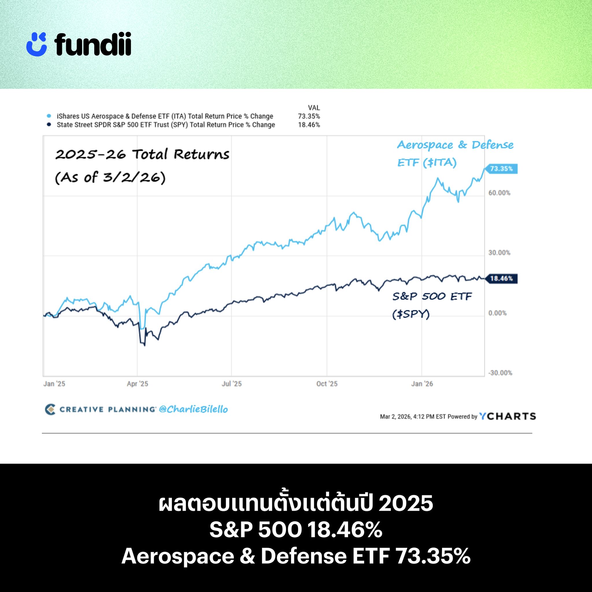 ◾️ผลตอบแทน iShares US Aerospace & Defense ETF ($ITA) อยู่ที่ 73.35%