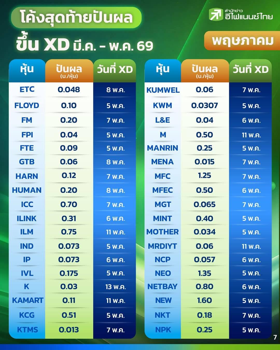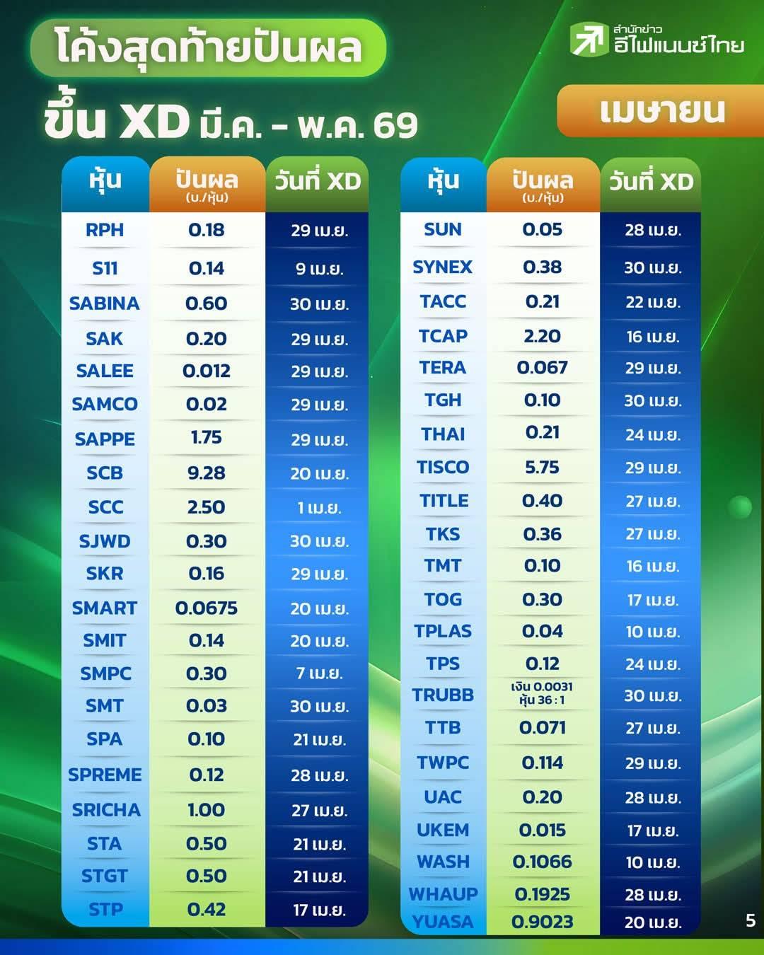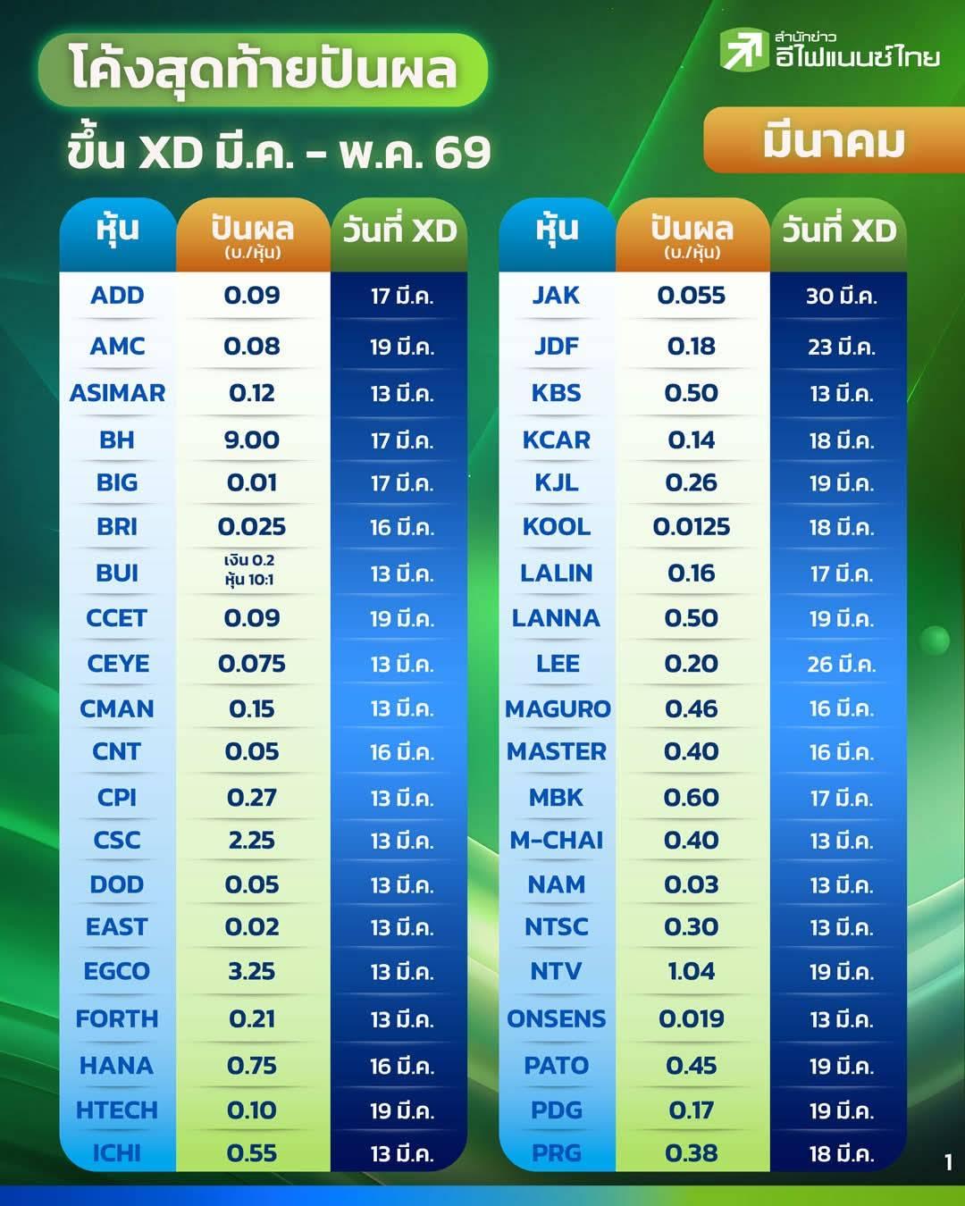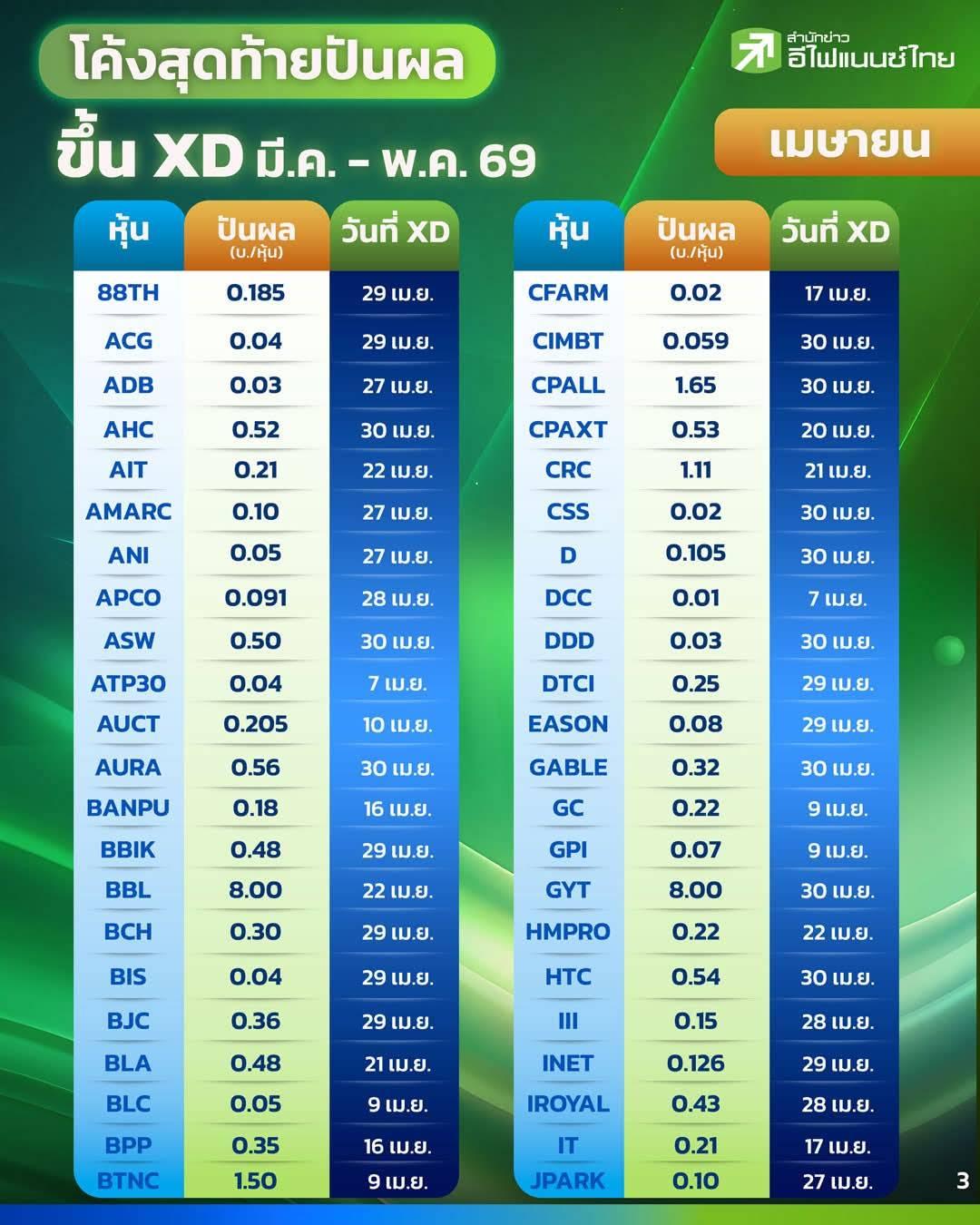 โค้งสุดท้ายปันผลขึ้น XD มี.ค. - พ.ค. 69 !!!