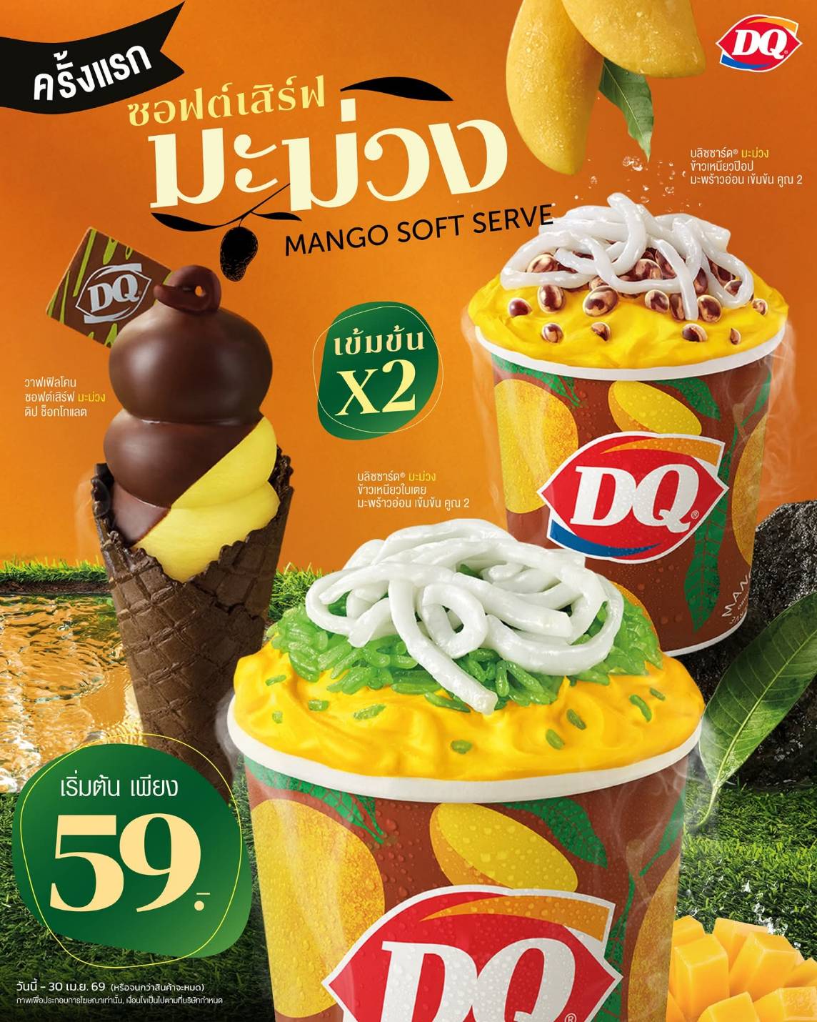 * วาฟเฟิลโคน ซอฟต์เสิร์ฟ มะม่วง ดิป ช็อกโกแลต ราคา 59.-