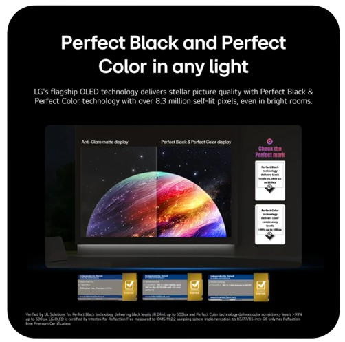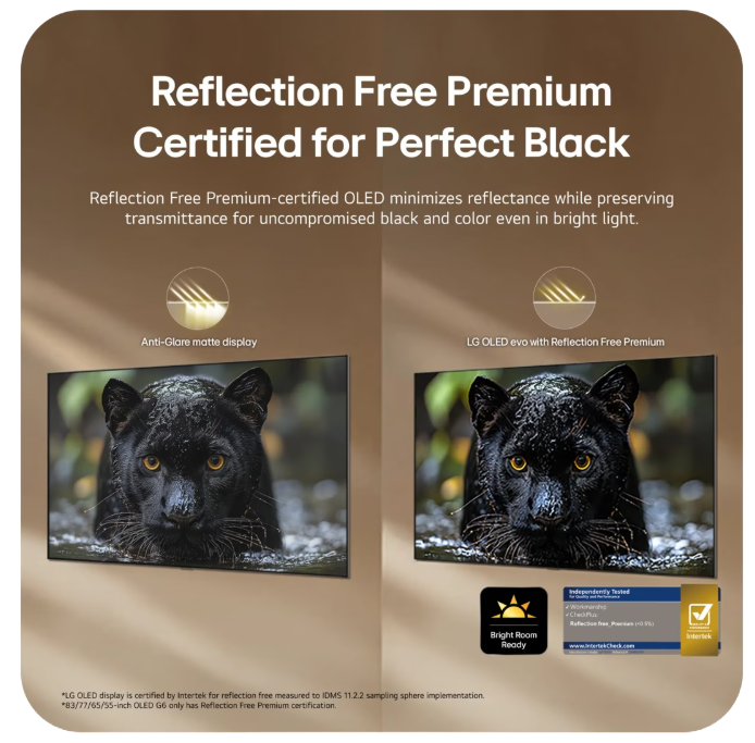 และโปรเซสเซอร์ AI Alpha 11 Gen 3 รุ่นล่าสุด นอกจากนี้ ยังมีการเคลือบ ' Reflection Free Premium ' ที่โปรโมตโดย LG Display