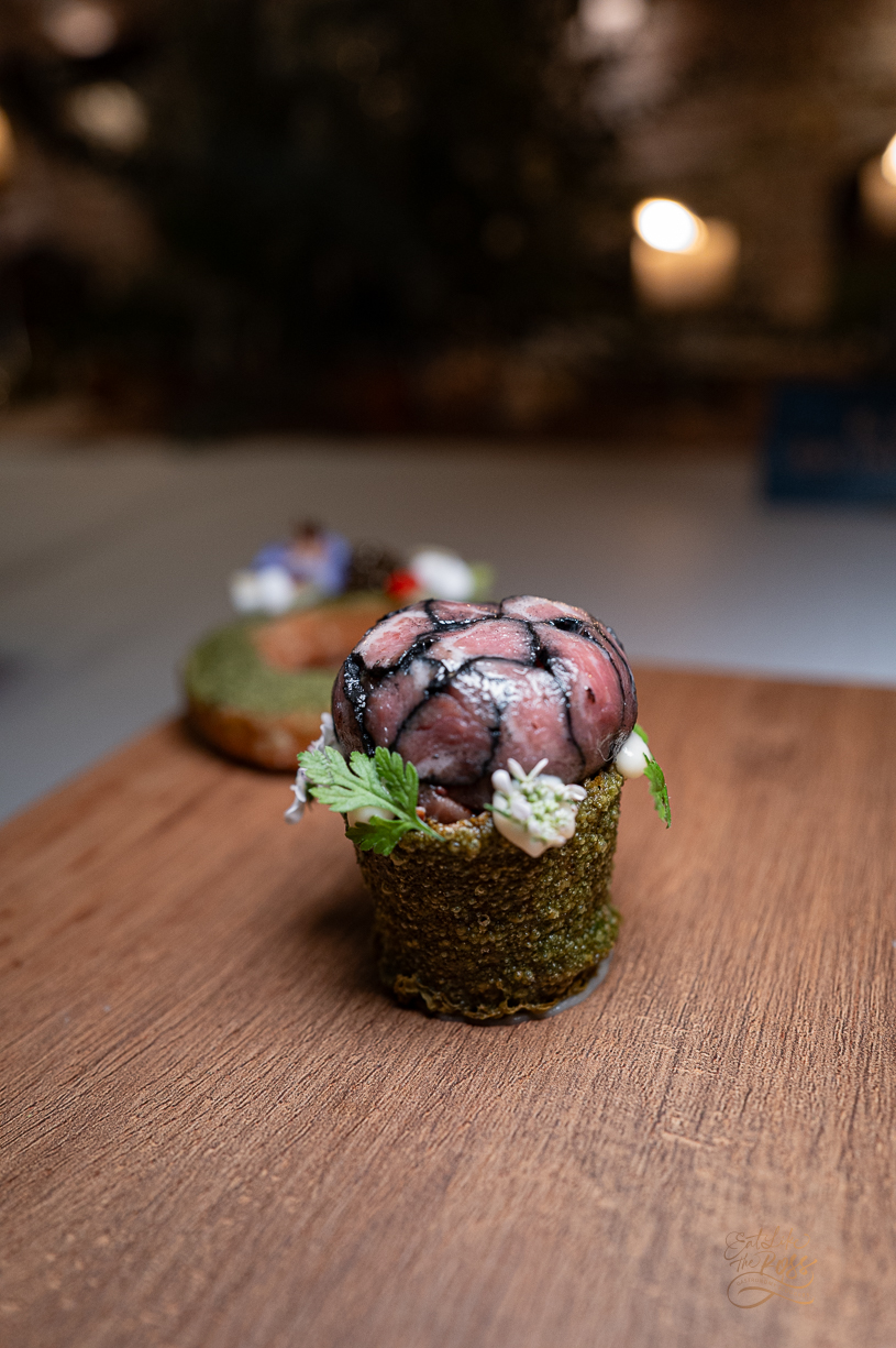 BEEF EYE ROUND ก้อยเนื้อ ยกระดับก้อยเนื้อด้วยสองเนื้อสัมผัสที่ตัดกันอย่างลงตัว ทั้งความนุ่มละมุนจากเนื้อสันในทาร์ทาร์ และความเหนียวสู้ฟันจากเนื้อส่วน
