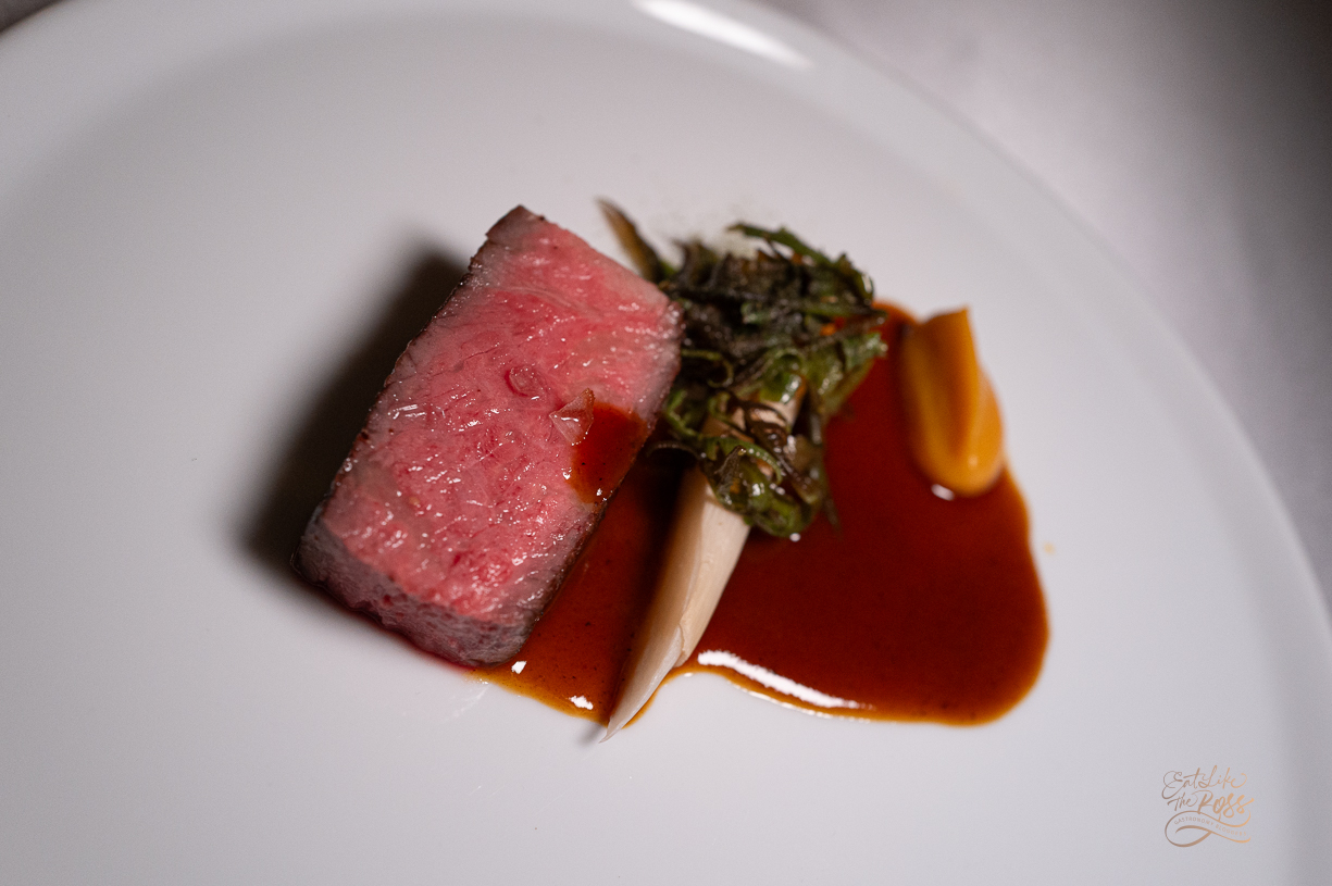 Crust บางๆ ที่ผิวหน้า ราดด้วยซอสแกงคั่ว Beef Jus ที่ปรุงรสด้วยพริกแกงคั่วและคัทซึโอะบุชิ (ปลาโอแห้ง) ให้รสชาติที่ร้อนแรงและลุ่มลึก เป็นจานที่ผมประทับใจที่สุดในวันนี้🌶️