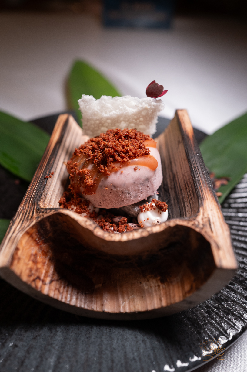 DESSERT ข้าวหลามหนองมน ปิดท้ายด้วยของดีเมืองชลบุรี ไอซ์ครีมข้าวหลามที่มาพร้อมขี้โล้ (กะทิเคี่ยวจนแตกมัน) ข้าวเหนียวดำ ละโมจิงาดำ ตัดรสด้วยซอลsaltedคาราเมล เป็นการจบคอร์สที่สมบูรณ์แบบ 🍚