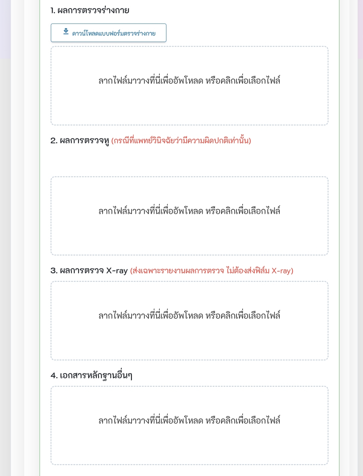 หนูไปตรวจร่างกายเตรียมส่งแล้วค่ะแต่หนูยังงงว่าอันที่4คือให้เราส่งเอกสารอะไรหรอคะ เอกสารการตรวจร่างกายเพิ่มเติมหรือเอกสารพวกสำเนาบัตรประชาชนคะ