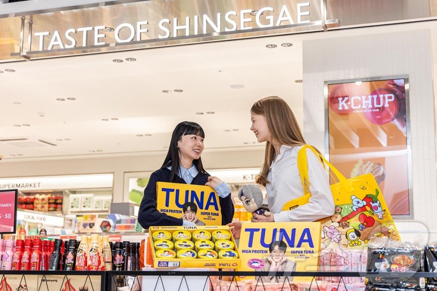 คอนเทนต์เกี่ยวกับอาหารเกาหลีก็ได้รับการเสริมความแข็งแกร่งมากขึ้นเช่นกัน "Taste of Shinsegae" พื้นที่คัดสรรอาหารเกาหลีภายในสาขาเมียงดง จะจำหน่ายสินค้าต่างๆ เช่น "ชุดของขวัญปลาทูน่าซุปเปอร์รุ่นดงวอน" ที่มีภาพของ จิน สมาชิกวง BTS และผลิตภัณฑ์ในบรรจุภัณฑ์ลายตัวการ์ตูน TinyTan