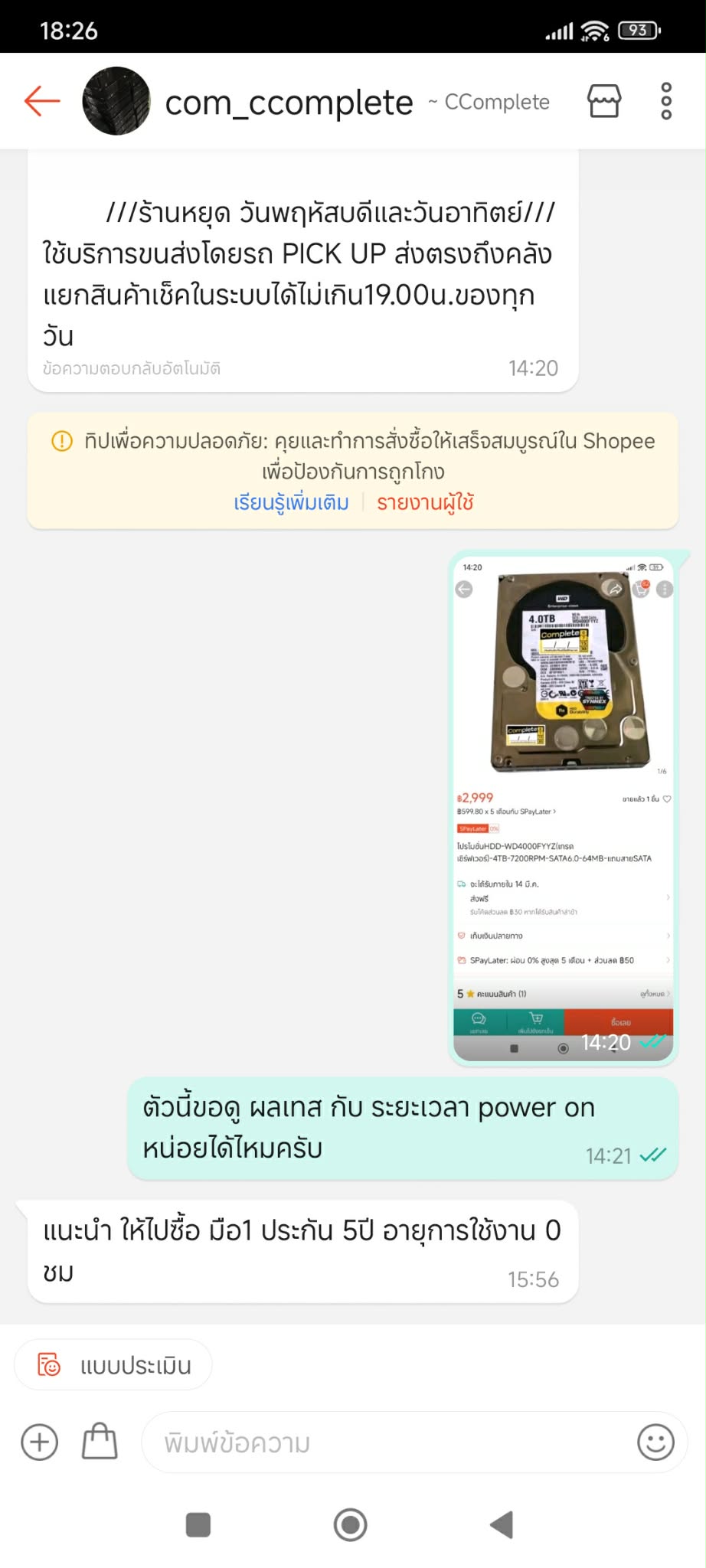 ผมก็แบบขายของ มือ 2 ขอดูแค่นี้ไม่ได้ หรอ แล้วคราวนี้ผมก็ไปเข้าดูรายละเอียดร้าน บอกลงทะเบียนมา 7 ปีละ ผู้ติดตาม 300 กว่าคนผมก็คิดว่าอาจจะเป็นร้านผี หรือเปล่าเลย หาใหม่ๆ ก็เจอของเดิมแต่คราวนี้ ร้านดีหน่อยคนติดตาม 1.6 k เลยทักไปถามแบบเดียวกัน สรุปได้คำตามเดียวกับ ให้ไปชื้อมือ 1 ประกัน 5 ปี อายุ 0 ชม. แล้วมันก็บล็อกผมไป สรุปคือผมทำอะไรผิดครับ ผมชื้อของ แต่ขอแค่ดูผล เทส ว่า HDD แบด แดง ไหมหรือ อายุใช้งานเท่าไหร่ แต่โดนบอกแบบนี้ บริการได้ดีมากๆจริงๆ ครับ ชื่อร้าน