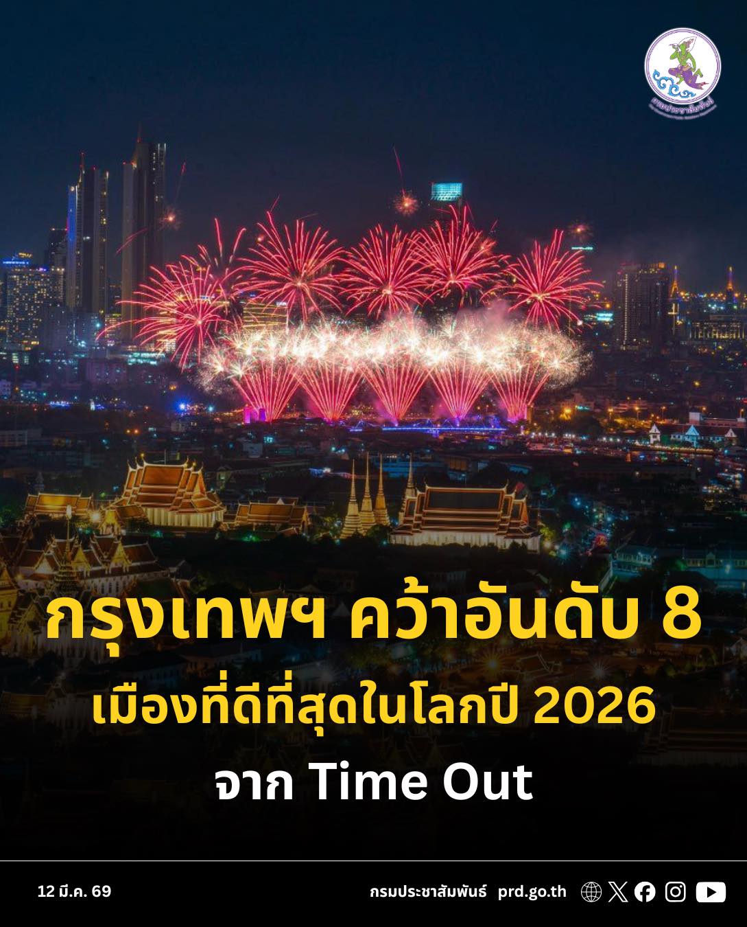 🤩🥰💖 เสน่ห์แรงไม่หยุด! “กรุงเทพมหานคร” คว้าอันดับ 8 เมืองที่ดีที่สุดในโลก ปี 2026 จาก Time Out 🎉🎉🎉