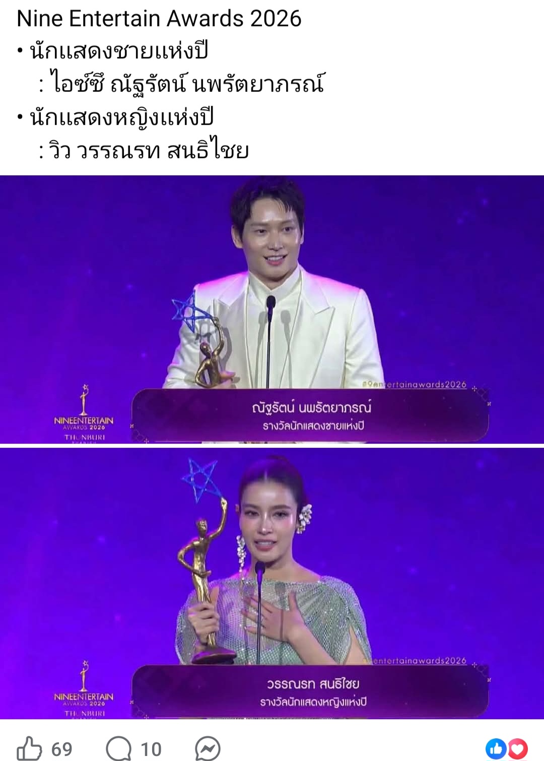วิว วรรณรท ได้รางวัลนักแสดงหญิงแห่งปี จาก "จิตสะกดแค้น"