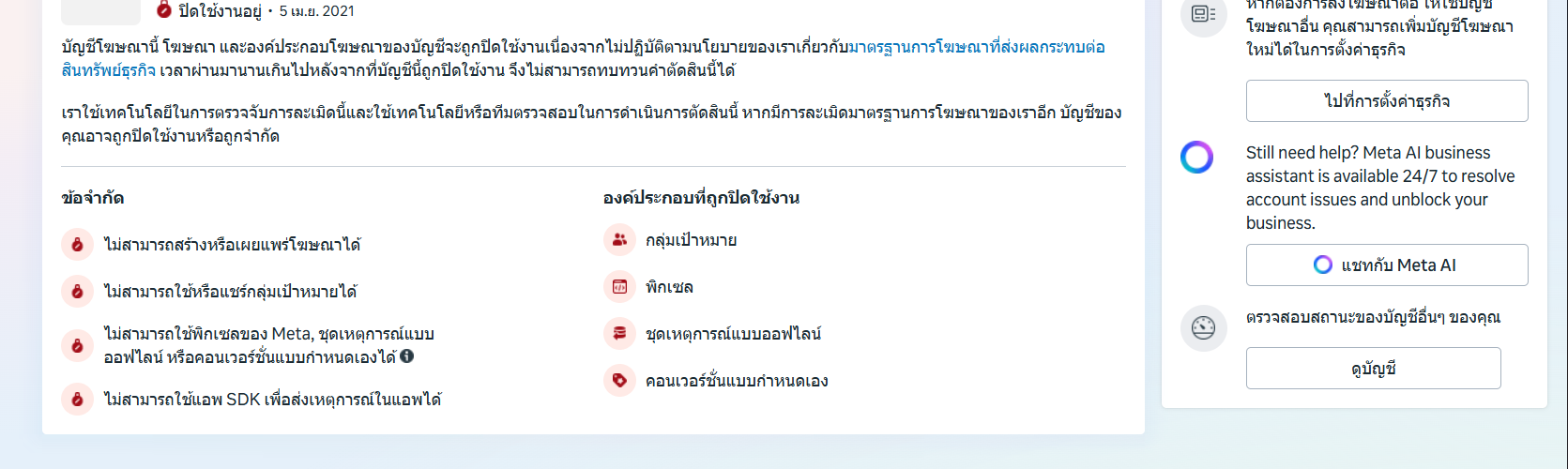คือตอนนี้ผมโปรโมทโฆษณาไม่ได้ แล้วก็แก้อะไรไม่ได้เลยครับ ผมต้องทำยังไงหรือส่งเรื่องยังไงได้บ้างครับ Ai ก็ช่วยอะไรผมไม่ได้เลย