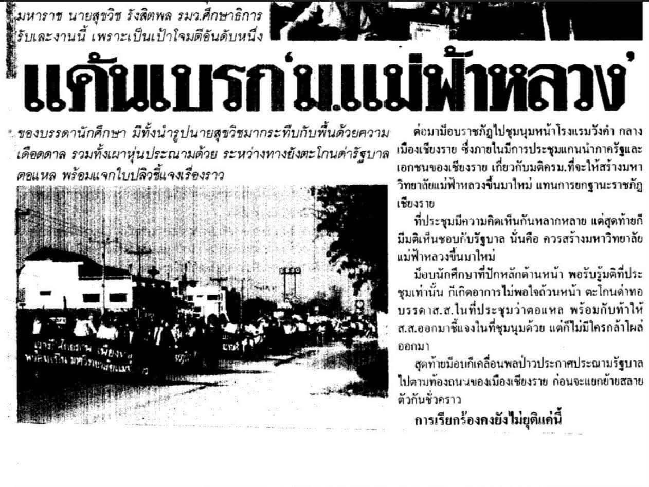 หากวันนี้จังหวัดเชียงรายไม่มีมหาวิทยาลัยแม่ฟ้าหลวง จะเป็นอย่างไรครับ