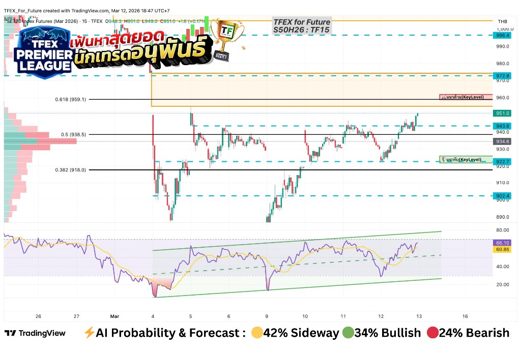 ⚔️ แนวต้าน (Resistance): 959 (จุดร่วม 2 Indicators)