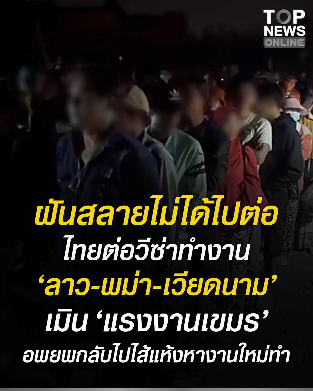 ฝันสลายไม่ได้ไปต่อ ไทยต่อวีซ่าทำงาน "ลาว-พม่า-เวียดนาม" เมิน"แรงงานเขมร"อพยพกลับไปไส้แห้งหางานใหม่ทำ เมื่อวันที่ 12 มี.ค. 2569  สืบเนื่องจาก นางสาวตรีนุช เทียนทอง รัฐมนตรีว่าการกระทรวงแรงงาน กล่าวว่าที่ประชุมคณะรัฐมนตรี (ครม.) มีมติเห็นชอบ ให้ขยายระยะเวลาดำเนินการต่อใบอนุญาตทำงานให้กับแรงงานต่างด้าวสัญชาติ ลาว เมียนมา และเวียดนาม กว่า 3.7 แสนคน ออกไปถึงวันที่ 31 มี.ค. 2569 เพื่อไม่ให้แรงงานกลุ่มนี้ หลุดออกจากระบบ กลายเป็นแรงงานผิดกฎหมาย รวมทั้งไม่ให้ส่งผลกระทบต่อภาคธุรกิจและแรงงานของประเทศ โดยเฉพาะการขับเคลื่อนเศรษฐกิจของประเทศ  เป็นเหตุให้แรงงานกัมพูชาต้องอพยพกลับประเทศตัวเอง จึงมีคลิป คนเขมรที่ใบอนุญาตทำงานในไทยหมดอายุ แห่กลับประเทศ