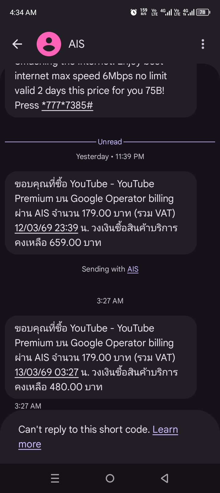 สมัคร YouTube premium ด้วยวงเงิน ais ไม่ได้แถมโดนหักตังในวงเงิน 2 รอบด้วย