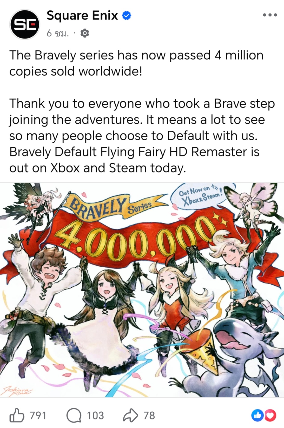 ล่าสุดทาง square enix ออกมาประกาศว่า ยอดขายซีรีส์ BRAVELY รวมกันได้ 4 ล้านชุดแล้วทั่วโลกครับ