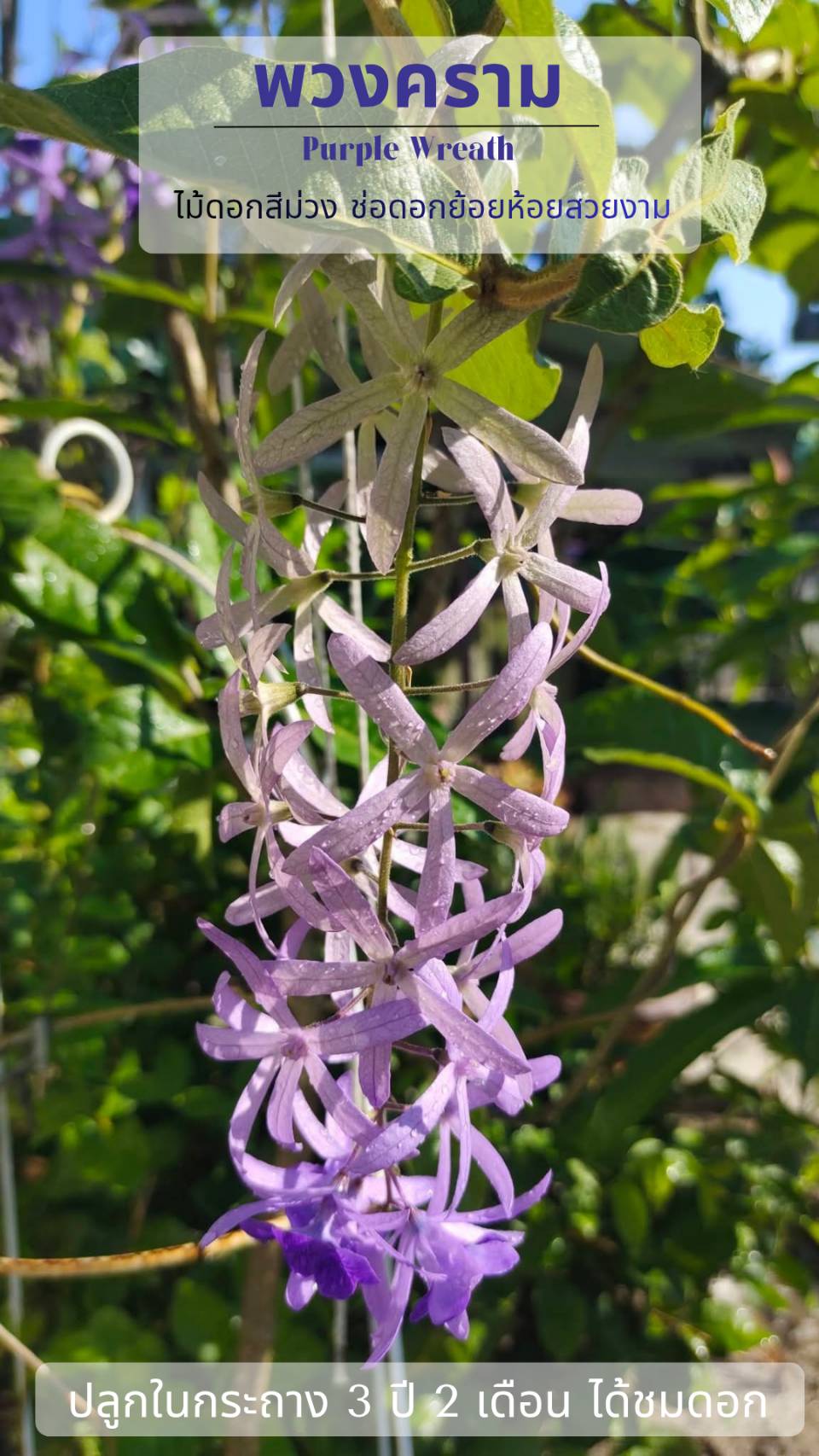 [CR] 🎀 ชวนปลูก "ต้นพวงคราม" (Purple Wreath) 💐 ไม้ดอกสีม่วง 💢 ช่อดอกย้อยห้อยสวยงาม 💜 ปลูกในกระถาง 3 ปี 2 เดือน ได้ชมดอก