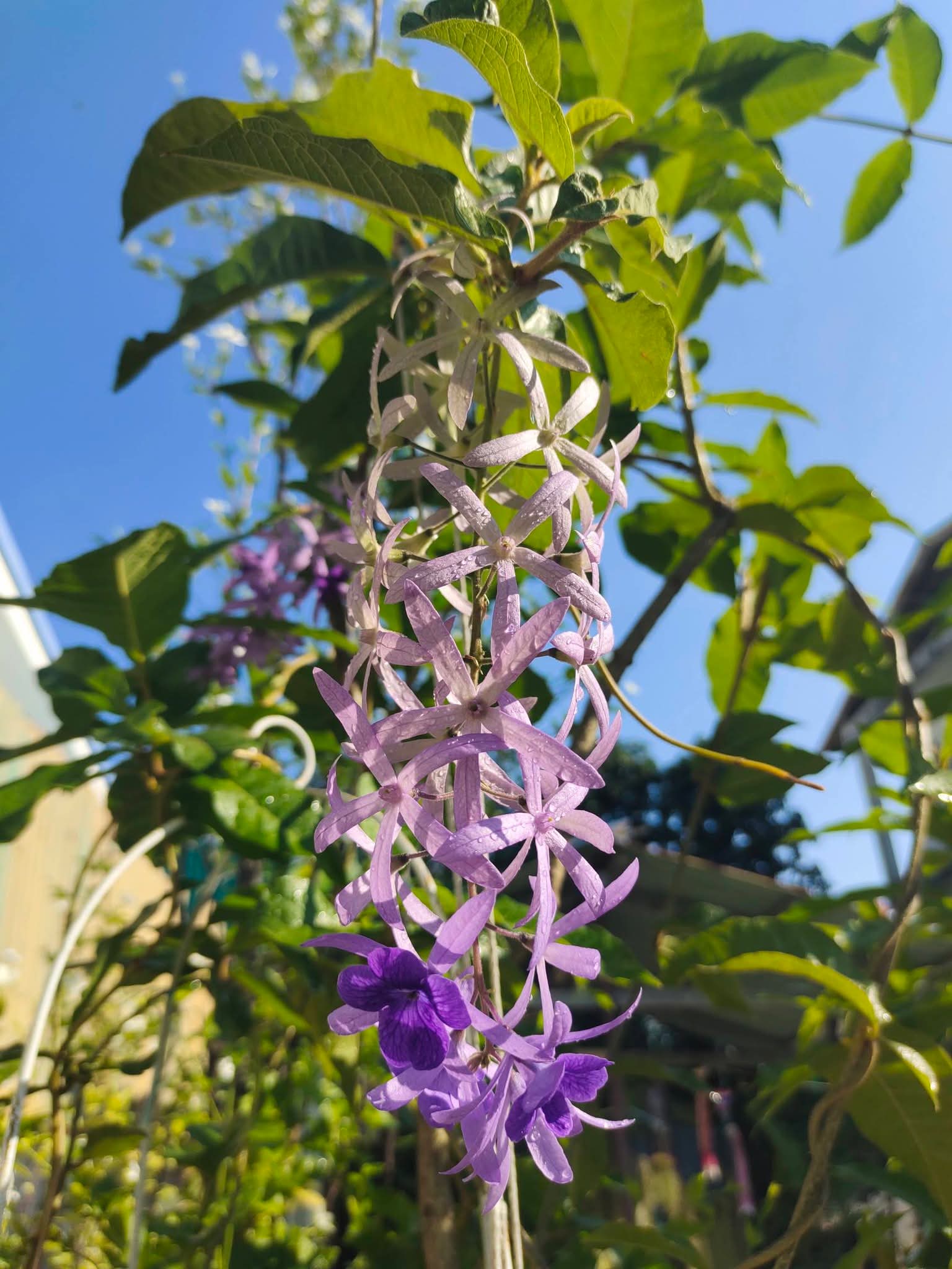 🎀 ต้นพวงคราม มีชื่อทางวิทยาศาสตร์ว่า Petrea volubilis L. 🌥️ เป็นหนึ่งในต้นไม้ที่ทนแดดได้ทั้งวัน และทนความแล้ง 💢 จึงถือว่าเป็นต้นไม้ที่ปลูกง่าย เลี้ยงง่าย และอัตราการเจริญเติบโตเร็ว ⭐👍🏻