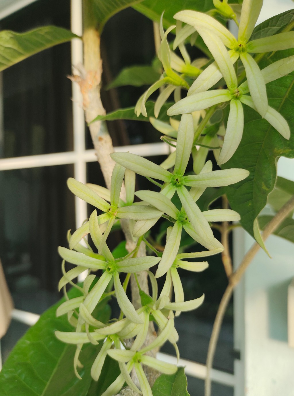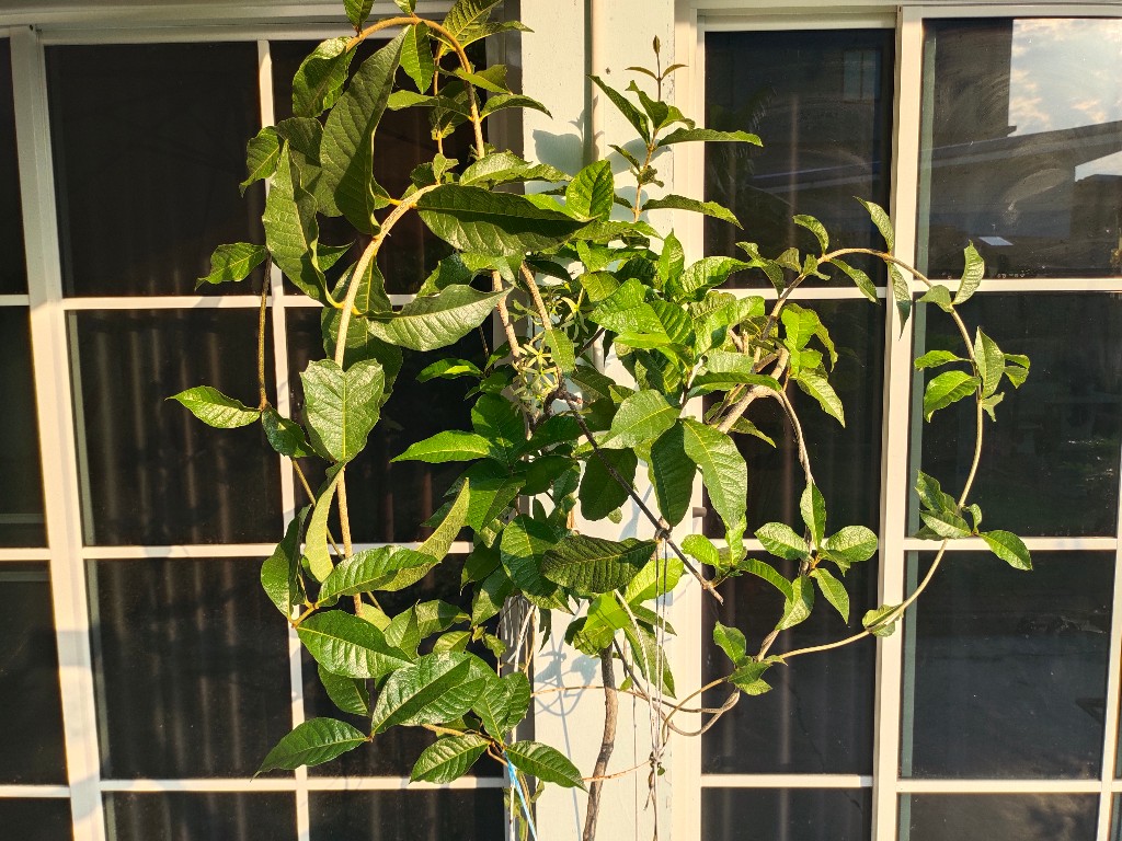 สวัสดีครับ พบกันนานๆ ครั้งมีไม้ที่ปลูกเลี้ยงมาให้ชมกันครับ ปลูกตอนเดือนมีนาคม59 ปลูกลงดินริมรั้ว ไม้เถาเลื้อยกิ่งแข็งแรงครับ นานๆ จะให้ดอก ทว่าหากปล่อยให้อดน้ำสักอาทิตย์นึง แล้วรดน้ำแบบเยอะๆ (ดินชุ่