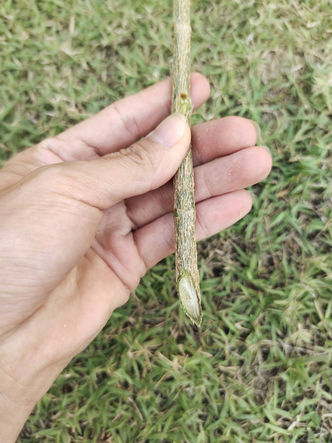 10/2/69 เลือกกิ่งที่ไม่แก่และไม่อ่อนจนเกินไปและไม่มีดอก ตัดกิ่งให้มีความยาวประมาณ 6-8 นิ้ว (ควรตัดใต้ข้อใบ) และตัดเฉียง ริดใบด้านล่างออก ให้เหลือไว้เพียง 2-3 ใบด้านบน เพื่อลดการคายน้ำ