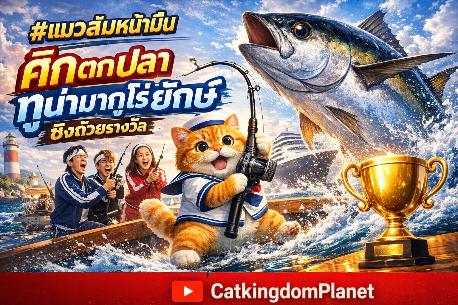 🐟🏆#แมวส้มหน้ามึน ศึกตกปลาทูน่ามากูโร่ยักษ์ชิงถ้วยรางวัล🐾