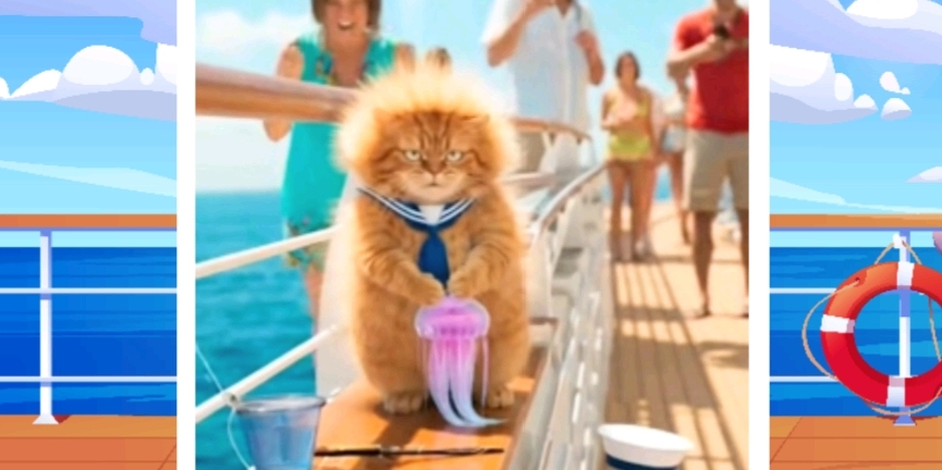 การแข่งขันเริ่มต้นขึ้นกลางมหาสมุทร แต่ทุกอย่างไม่ได้เป็นไปอย่างที่คิด เพราะ #แมวส้มหน้ามึน มักตกได้ของประหลาดแทนปลา ไม่ว่าจะเป็นปลาหมึกยักษ์ ปลาหน้าตาแปลก สัตว์ทะเลประหลาด หรือแม้แต่สิ่งมีชีวิตเหนือจินตนาการ ทำให้เกิดเหตุการณ์ฮาวุ่นวายตลอดการแข่งขัน