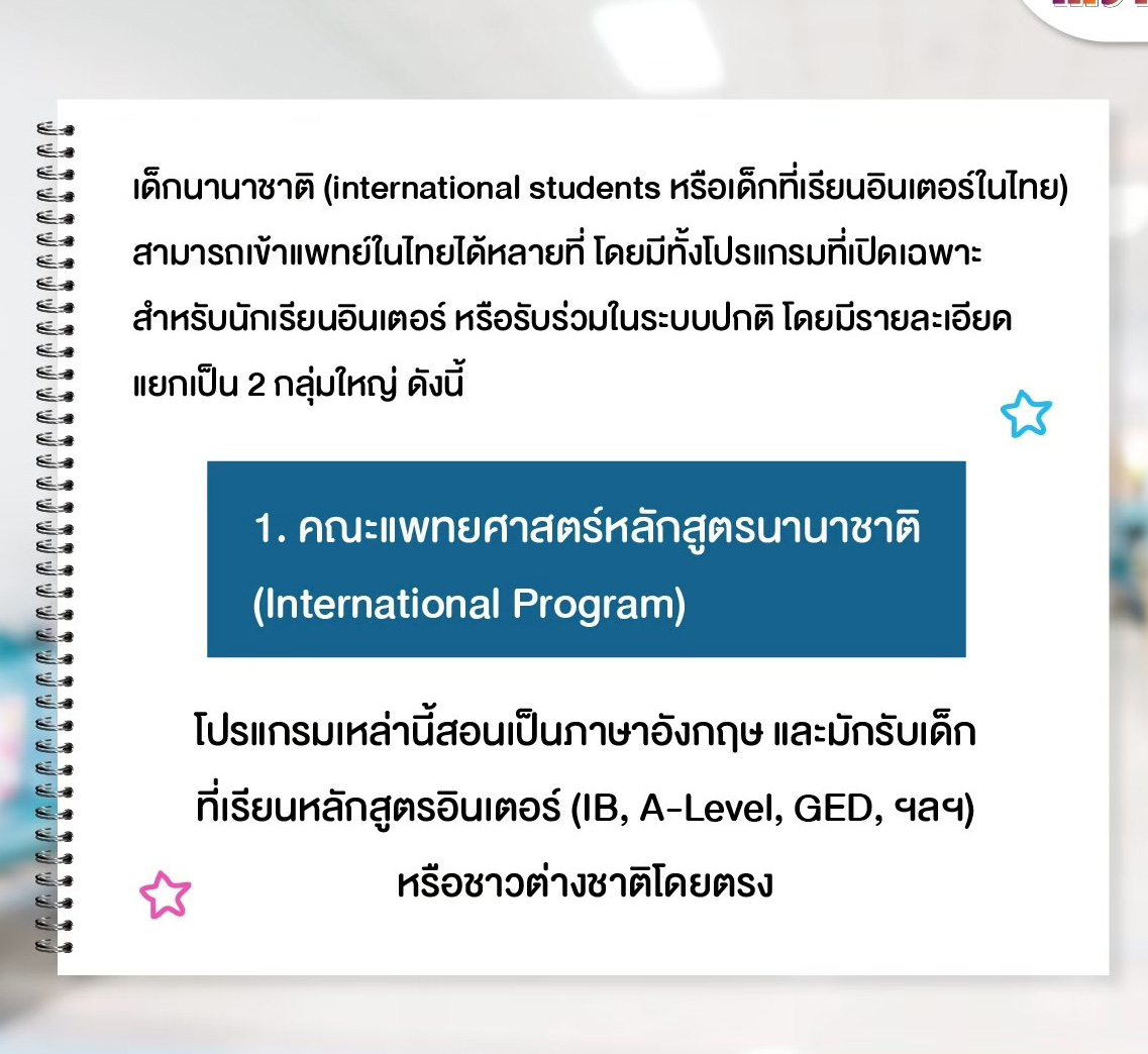 เจาะลึกเส้นทางเข้าหมอสำหรับเด็กอินเตอร์ (International Programs)