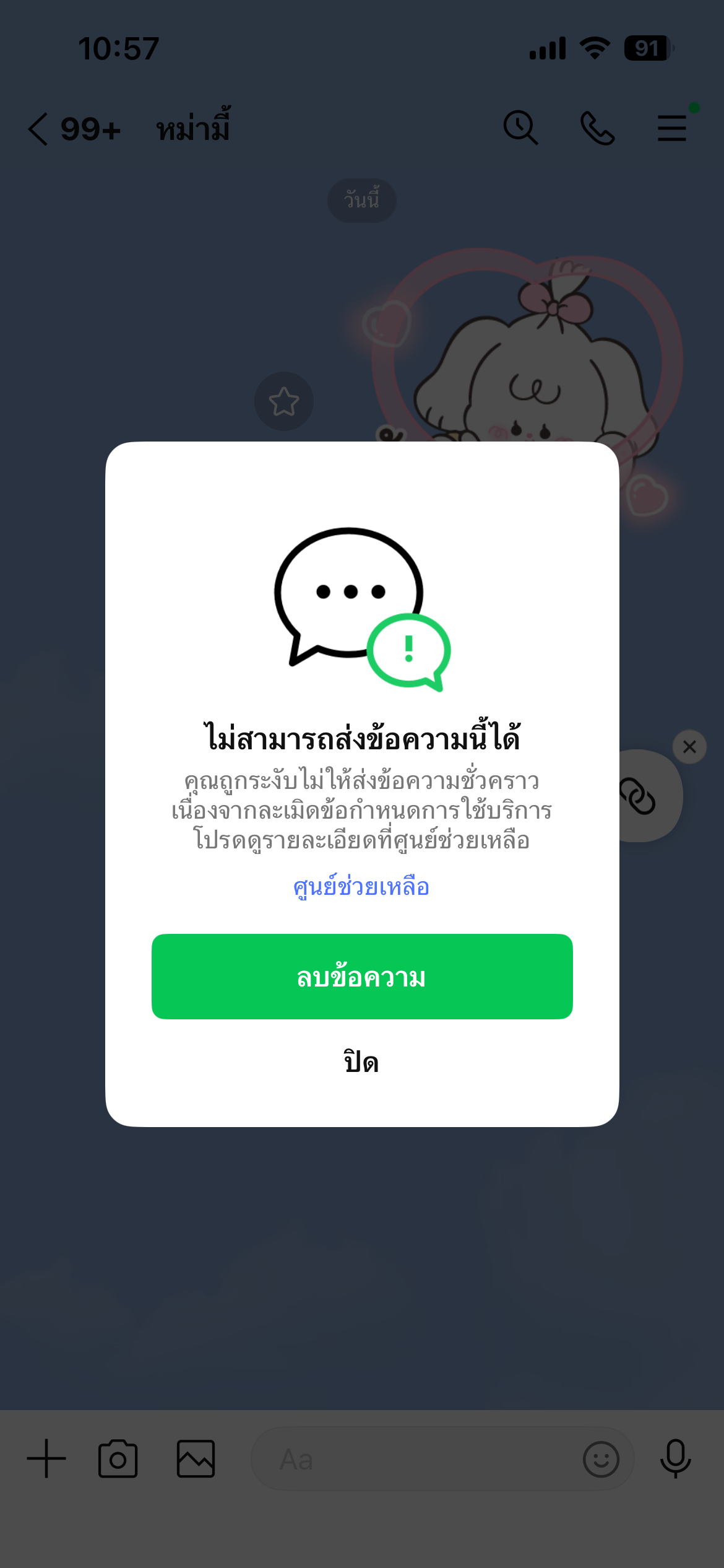 คือเราโดนระงับไลน์มา90วันค่ะ แล้วพอถึงเวลาเข้าไลน์ได้แต่กลับว่าตอบไลน์ไม่ได้ค่ะ คือแบบว่าเราอุตส่าห์รอมาตั้ง90วันอะค่ะ แต่นี่ก็ยังตอบไม่ได้เราส่งความช่วยเหลือไปหาไลน์หลายรอบมากๆๆไม่ได้การติดต่อกับมาเลยค่ะ มาแย่มากๆๆๆ