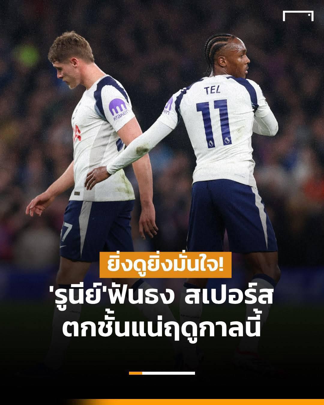 เวย์น รูนีย์ อดีตกองหน้าทีมชาติอังกฤษ ฟันธงว่า ท็อตแนม ฮ็อทสเปอร์ จะตกชั้นจากพรีเมียร์ลีกฤดูกาลนี้ เพราะทีมดูมีปัญหาในทุกจุด