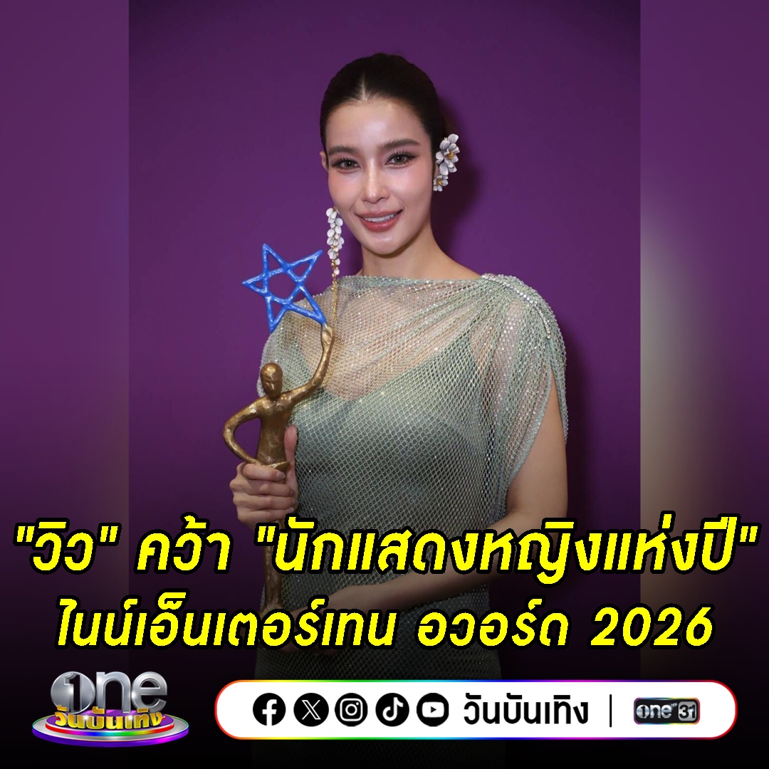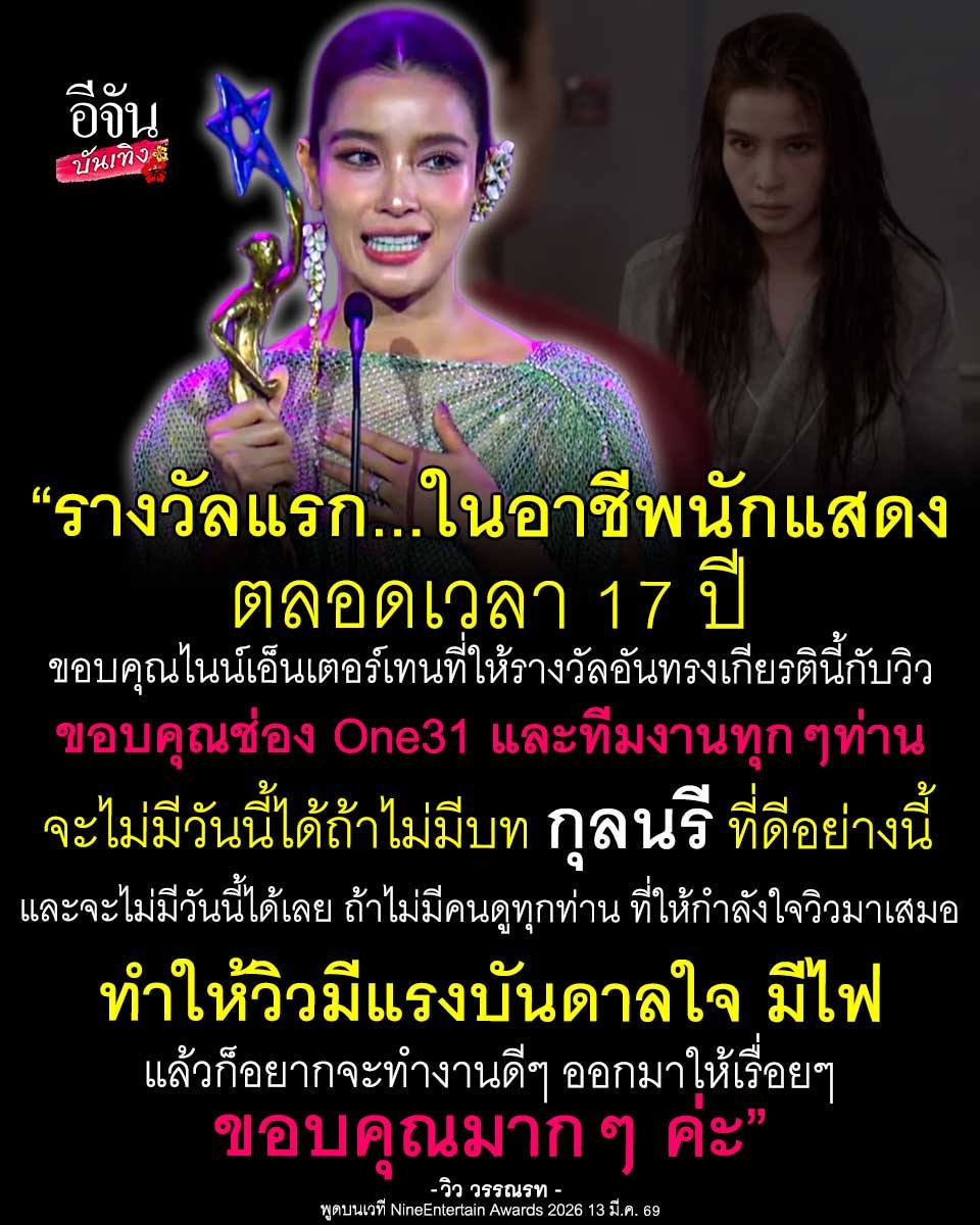 รางวัลแรกในอาชีพนักแสดงตลอด 17 ปี “วิว วรรณรท” คว้านักแสดงหญิงแห่งปี ไนน์เอ็นเตอร์เทน อวอร์ด 2026 🎉