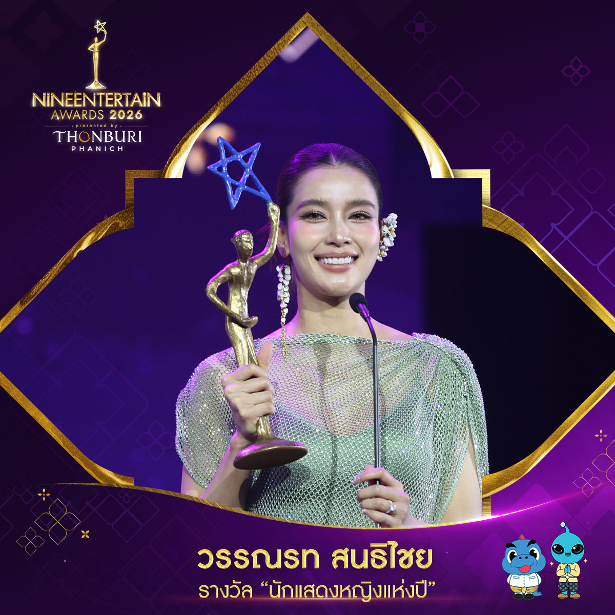 รางวัลนักแสดงหญิงแห่งปี บนเวที NineEntertain Awards 2026 presented by Thonburi Phanich มอบให้กับ วิว - วรรณรท สนธิไชย .-ไนน์เอ็นเตอร์เทน