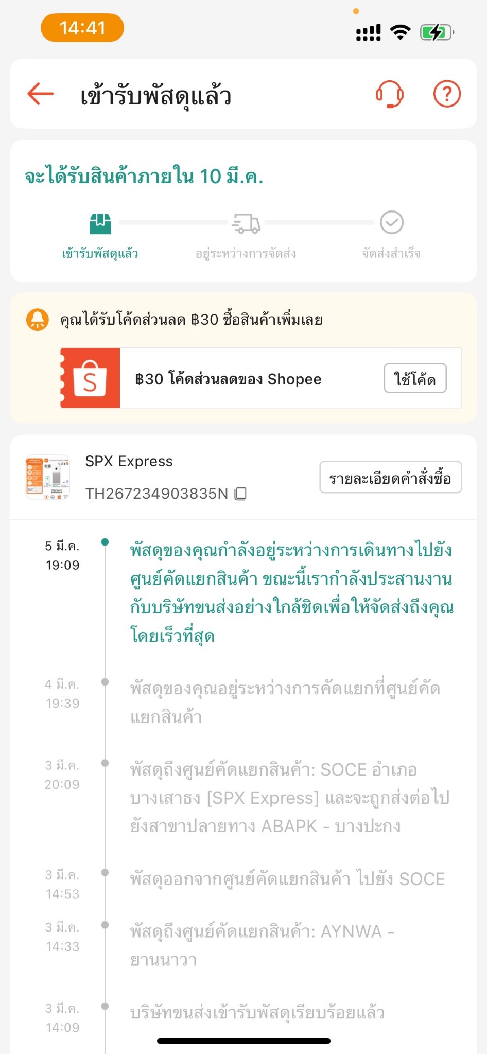 สั่งตั้งแต่วันที่ 3 มาวันที่ 5 สถานะนิ่งจนถึงวันนี้ก็ยังไม่ได้รับสินค้า โทรสอบถามทาง call center ของ SPX Express แล้ว เขาแจ้งว่าจัดส่งล่าช้า จึงตีสินค้ากลับไปทางร้านแล้ว เลยกดขอคืนเงินแต่ก็โดนยกเลิกการคืนเงิน เพราะไม่สามารถหยุดการขนส่งได้ เลยสอบถามทาง call center ของ shopee เรื่องการขอคืนเงิน ก็แจ้งว่าให้ลองกดขอคืนอีกครั้ง ถ้าครบ 3 ครั้งแล้วไม่สามารถกดขอคืนได้อีก ให้ติดต่อไปใหม่อีกครั้ง และพอสอบถามทางร้านว่าสามารถยกเลิก Order ให้ได้มั้ย ก็ไม่สามารถยกเลิกให้ได้ เพราะสินค้ายังตีกลับมาไม่ถึงร้าน ในกรณีนี้ทำอะไรได้อีกมั้ยครับหรือทำได้แค่รออย่างเดียว ไม่อยากกดขอคืนเงินแล้วเพราะสถานะยังขึ้นจัดส่งอยู่ยังไงก็โดนยกเลิกอีก