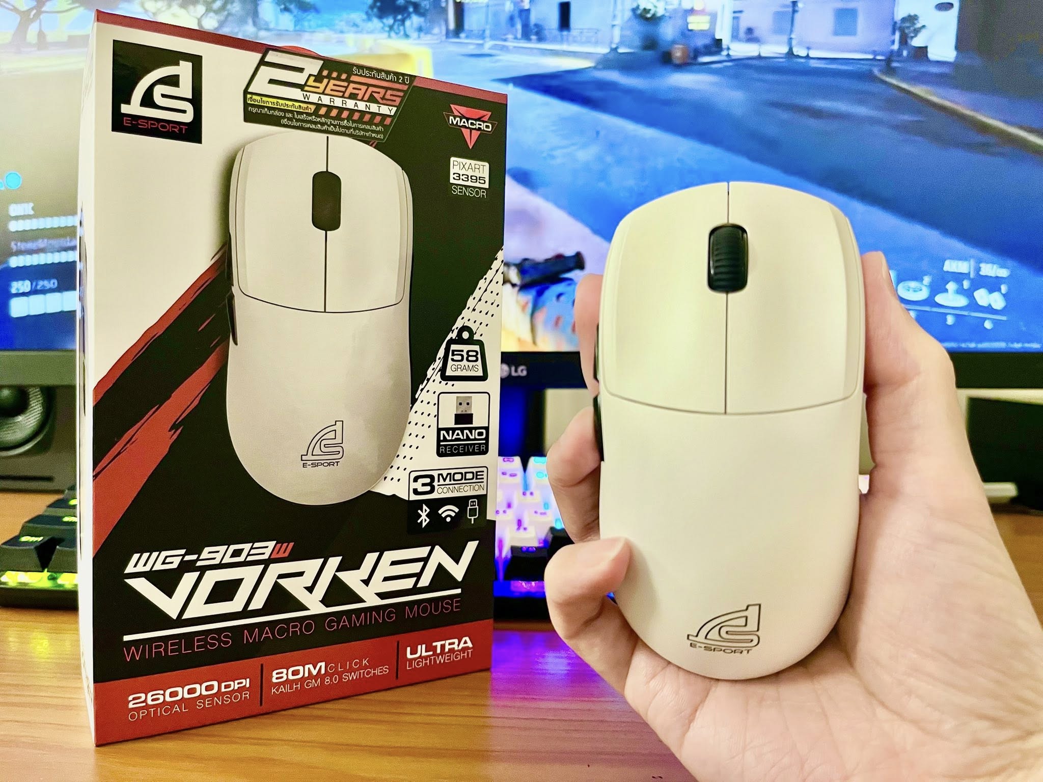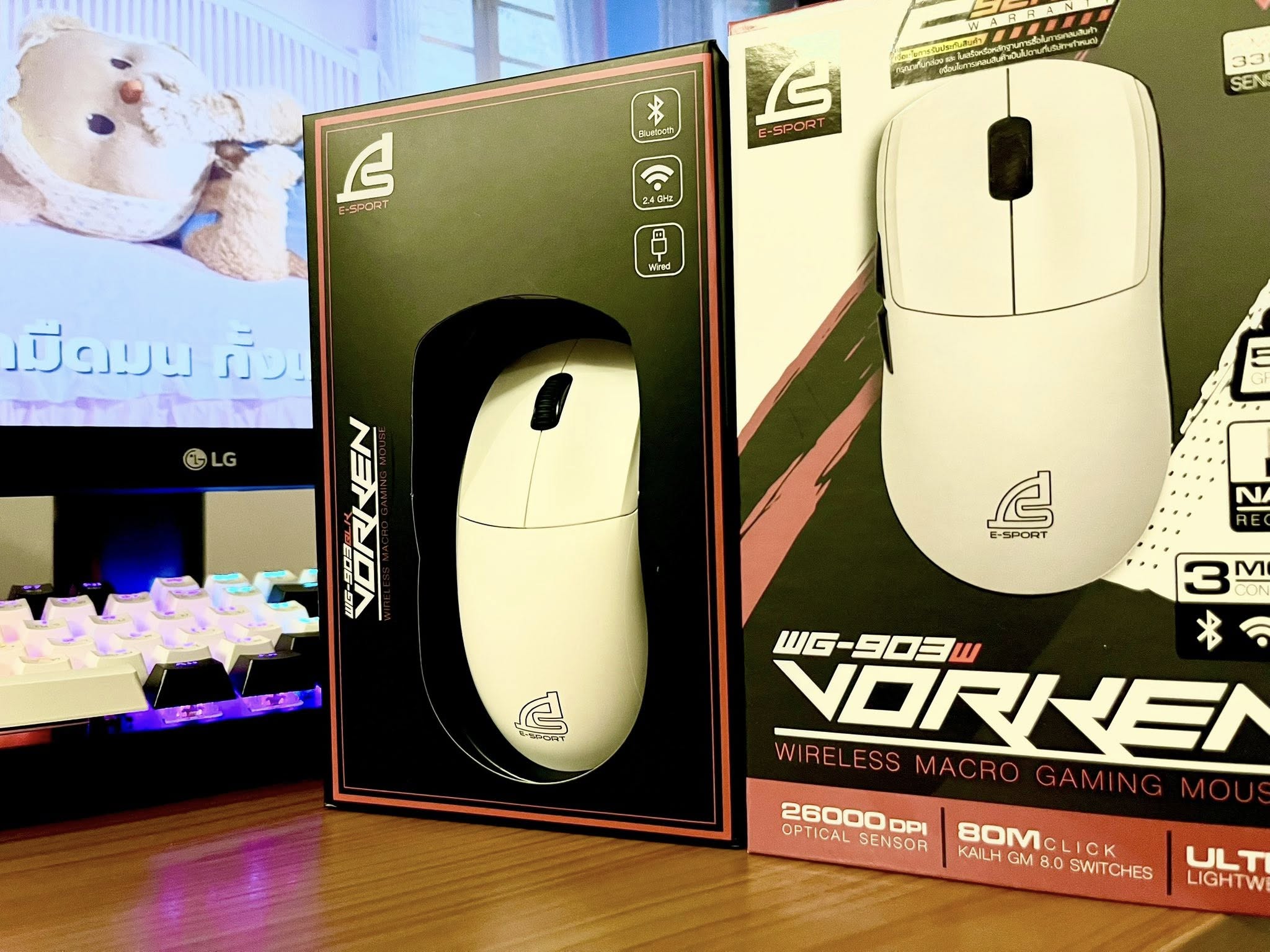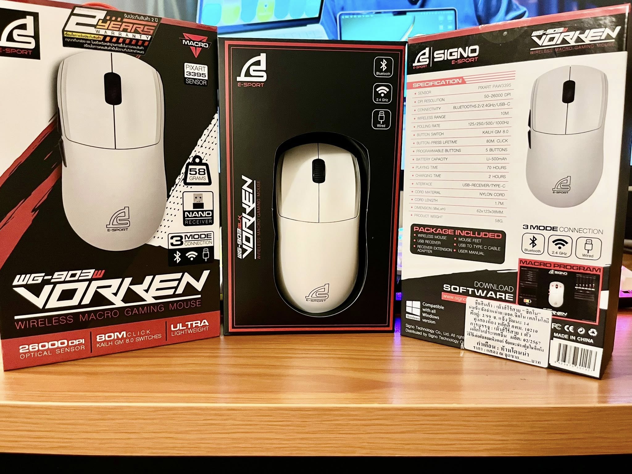 สวัสดีครับเพื่อนๆ วันนี้ผมจะพามาชมรีวิวสั้นๆของเมาส์เกมมิ่งไร้สาย ที่สร้างความฮือฮาในวงการนักเล่นเกมส์พอสมควรเลย นั่นก็คือ Signo WG-903 VORKEN ครับ ต้องเกริ่นก่อนเลยว่าในตลาดปัจจุบัน เมาส์น้ำหนักเบาหรือที่เรียกกันว่า Ultra-Lightweight กำลังมาแรงมากๆ แต่หลายๆ รุ่นที่สเปคสูงๆ ก็มักจะมีราคาที่พุ่งไปไกลหลายพันบาท จนบางทีเราก็แอบลังเล แต่ทาง Signo ทำการบ้านมาดีมากครับ กล้าอัดสเปคระดับท็อปมาให้ในราคาแค่พันกลางๆ ซึ่งหลังจากที่ได้ลองสัมผัสและคลุกคลีกับมันมาระยะนึง ผมบอกเลยว่ามันมีหลายจุดที่น่าสนใจและทำออกมาได้เกินราคาครับ
