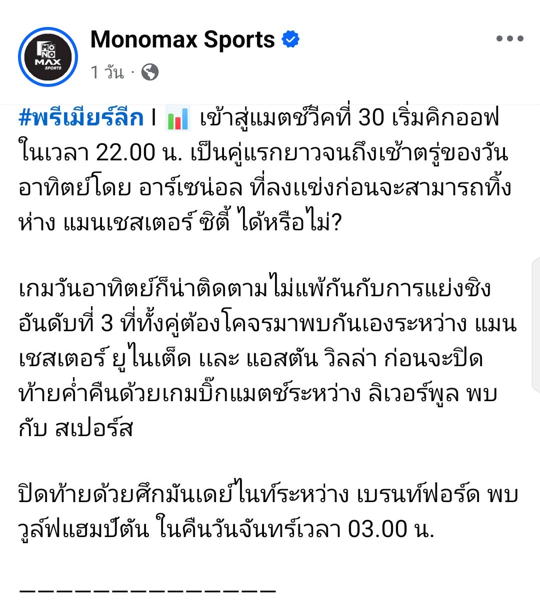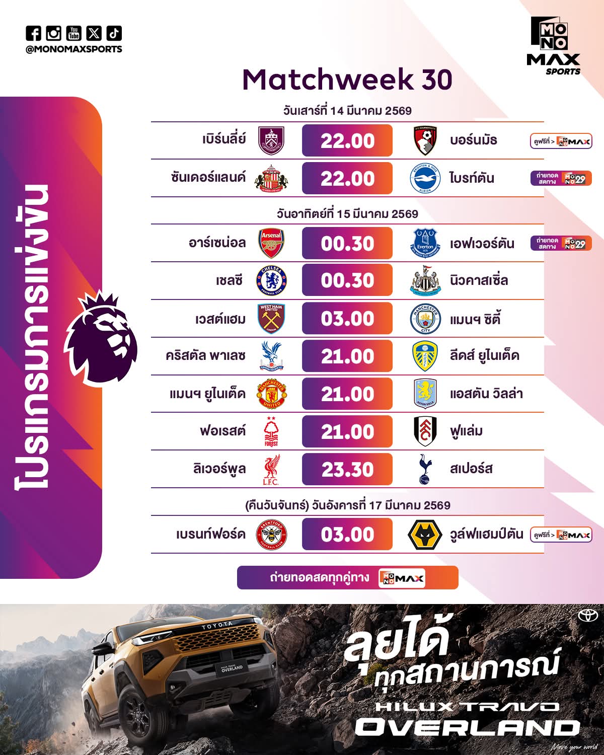⚽🏴 #พรีเมียร์ลีก I 🗓️ แมตช์วีคที่ 30