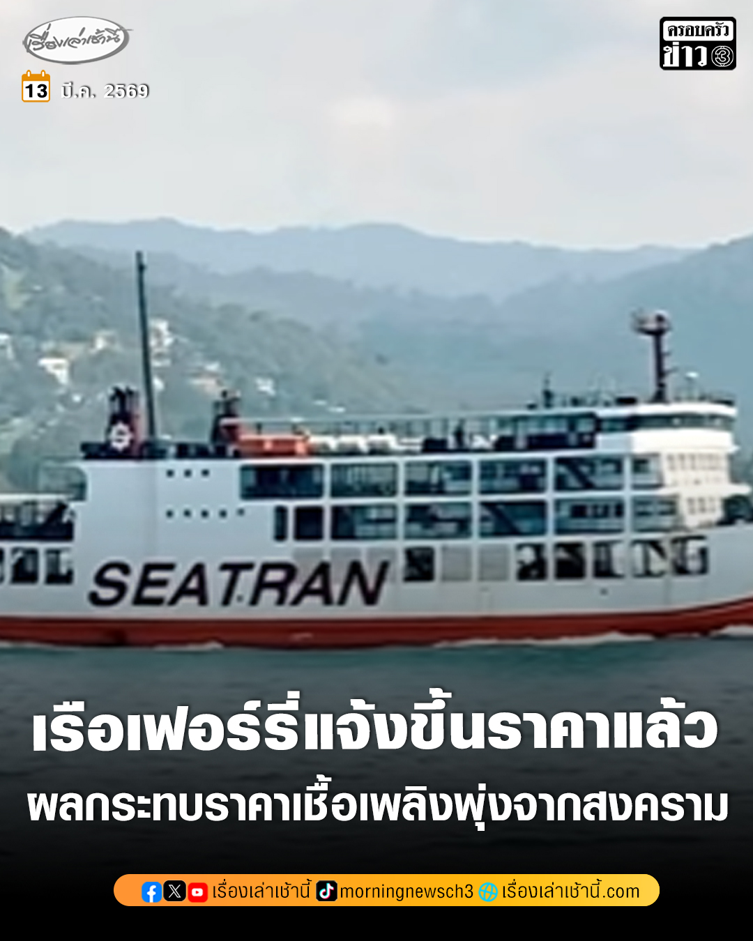 บริษัทจึงมีความจำเป็นต้อง ปรับอัตรค่าโดยสารเรือเฟอร์รี่ ตามกรอบที่ทางราชการกำหนด เพื่อรองรับต้นทุนเชื้อเพลิงที่เพิ่มสูงขึ้น โดยเส้นทางดอนสัก-เกาะสมุย-ดอนสัก ค่าตั๋วโดยสารจาก 170 บาท เป็น 180 บาท และเส้นทางดอนสัก-เกาะพะงัน-ดอนสัก ค่าตั๋วโดยสารจาก 240 บาท เป็น 250 บาท มีผลตั้งแต่ 14 มี.ค. 2569 เป็นต้นไป จนกว่าจะมีประกาศเปลี่ยนแปลง ทั้งนี้ หากซื้อตั๋วก่อนวันประกาศปรับราคา สามารถใช้เดินทางได้ตามราคาที่ซื้อไว้ โดยไม่ต้องจ่ายเพิ่ม